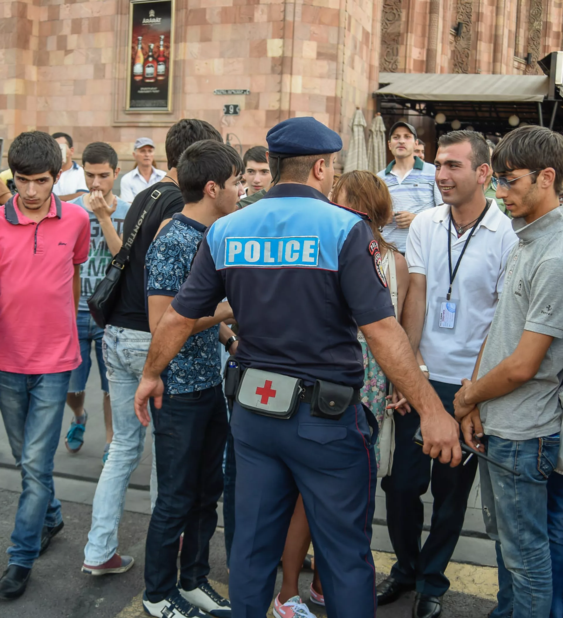 Один из организаторов акции протеста, председатель Хельсинкского комитета Армении Аветик Ишханян призвал активистов пройти к центральной части площади, но полицейские перегородили им дорогу, оцепив улицы.