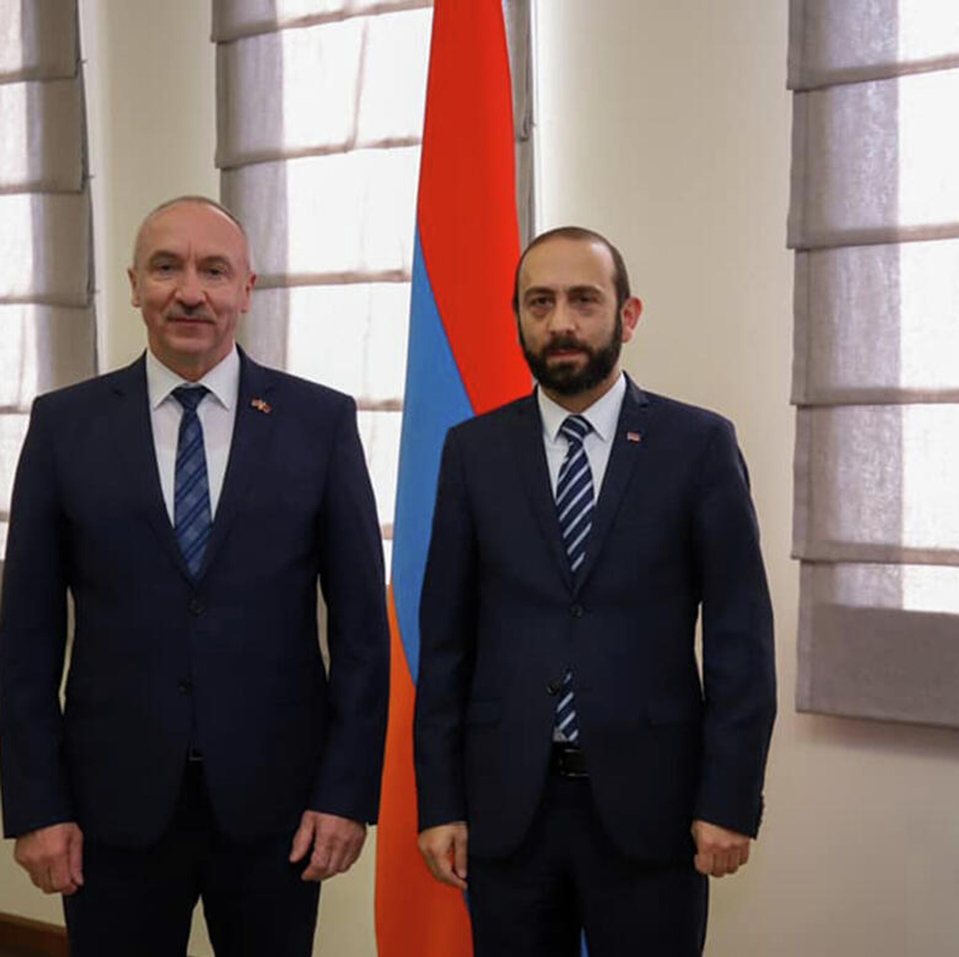 ЕРЕВАН, 11 окт — Sputnik. Министр иностранных дел Армении Арарат Мирзоян в понедельник обсудил с послом Беларуси в республике Александром Конюком вопросы развития отношений между двумя странами.Как сообщает пресс-служба МИД Армении, стороны подчеркнули важность взаимных визитов на высоком уровне, консультаций между внешнеполитическими ведомствами двух стран, а также расширения существующей договорно-правовой базы.В контексте активизации торгово-экономических связей Мирзоян и Конюк рассмотрели деятельность совместной армяно-белорусской межправкомиссии по экономическим вопросам.В ходе встречи состоялся также обмен мнениями по региональным вопросам.