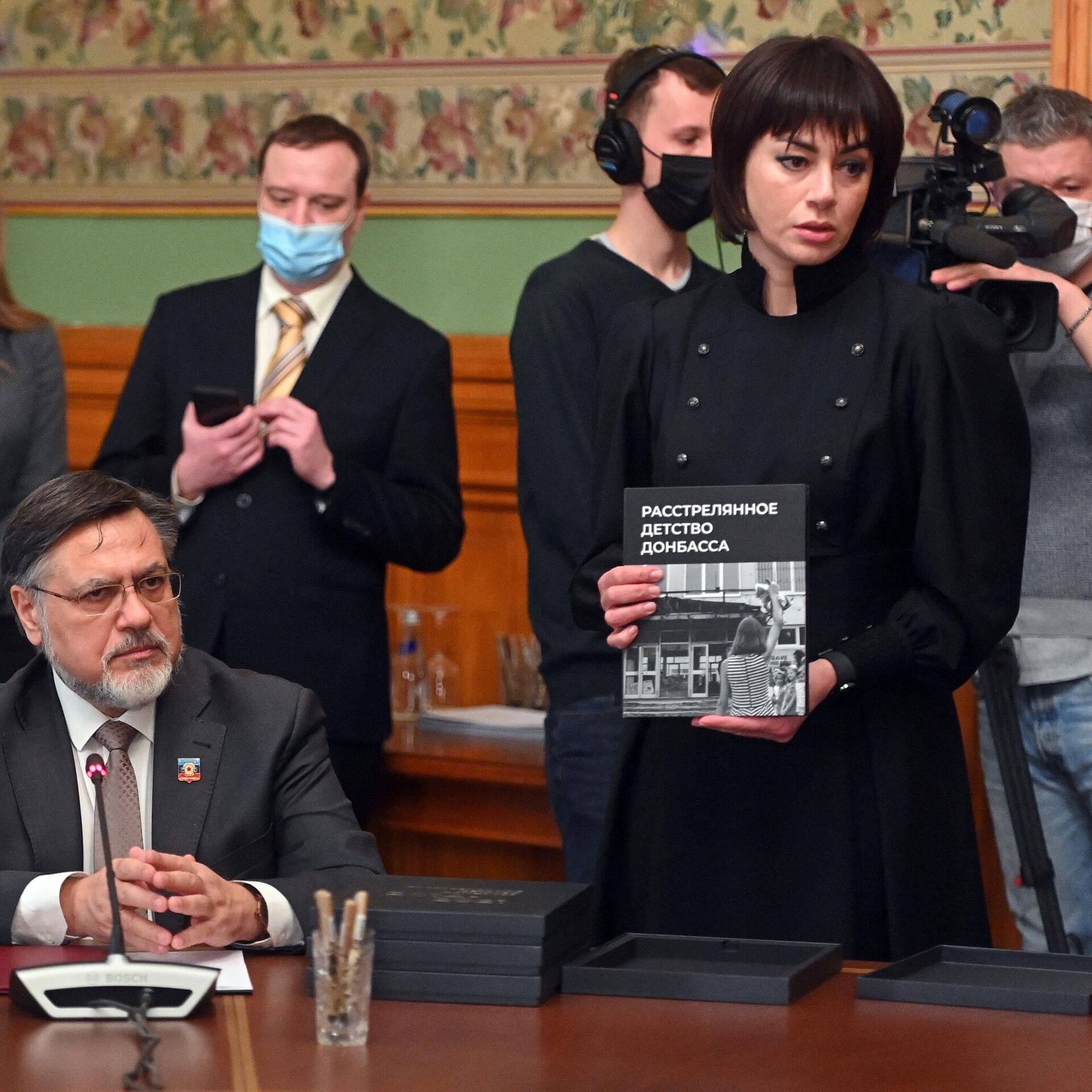 Официальные представители ДНР и ЛНР передали министру книгу "Расстрелянное детство Донбасса". 25.02.2022, Sputnik Армения