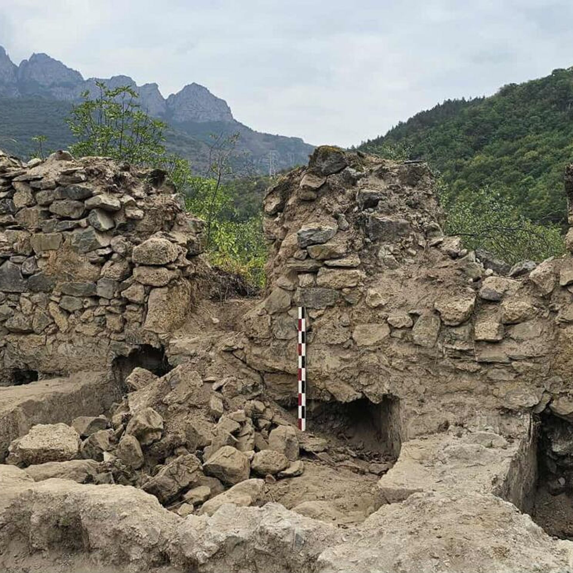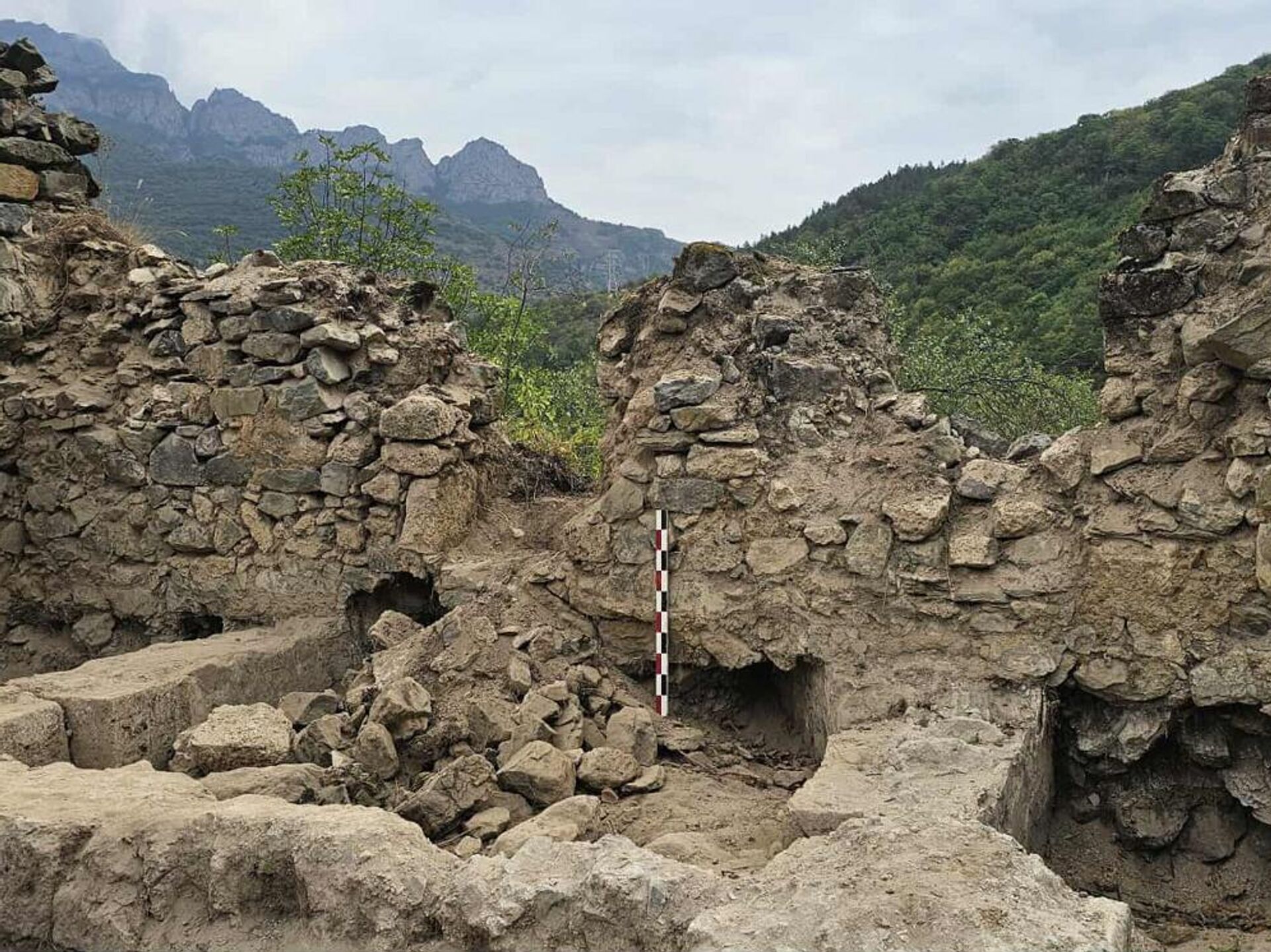 "Сохранились стены высотой 3-4 метра и более, прочно скрепленные известковым раствором, аккуратно выложенные, что говорит не только о развитом строительстве средних веков, но и о княжеском статусе крепости", — рассказал Sputnik Армения участник экспедиции, археолог Левон Мкртчян.