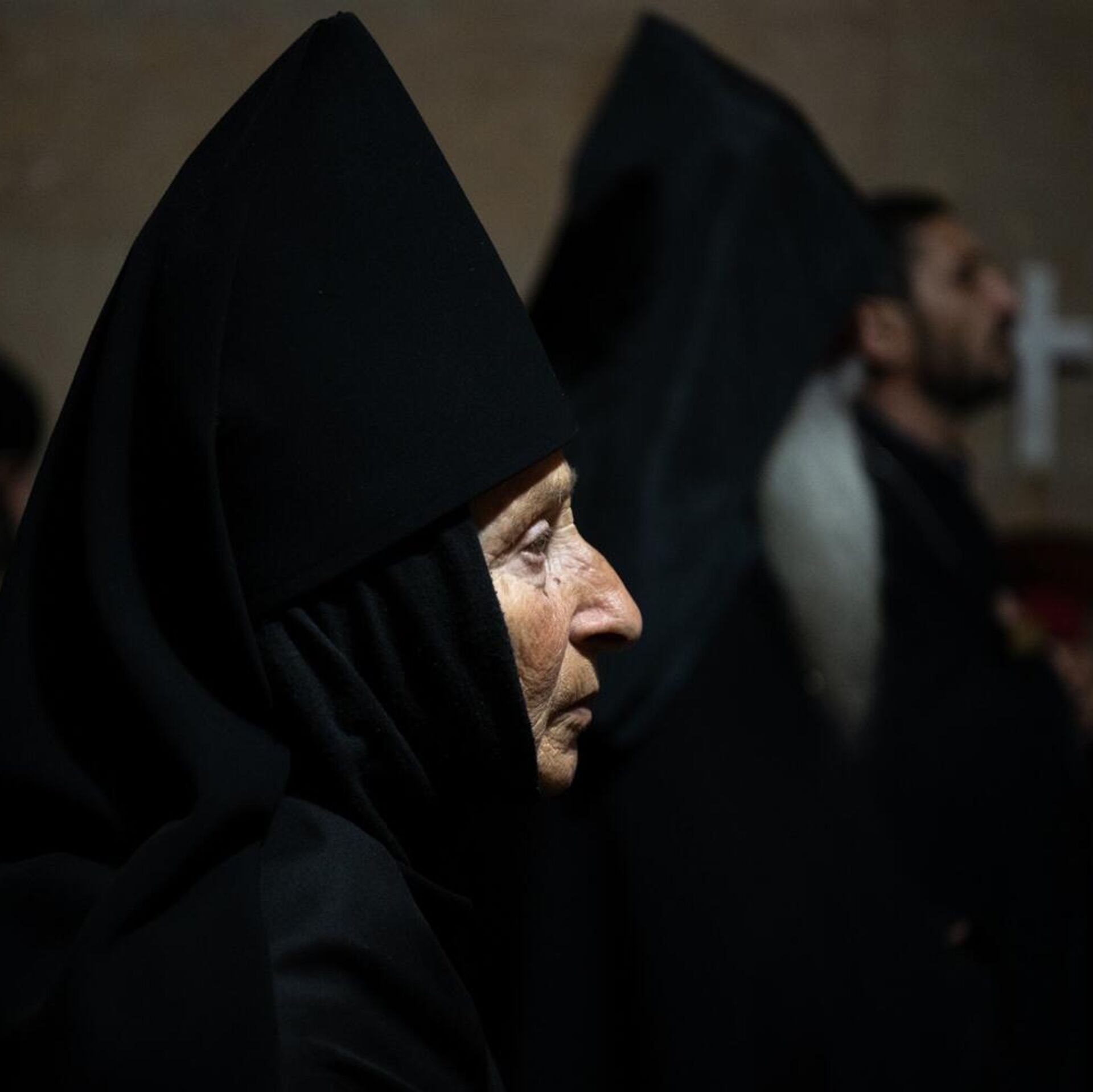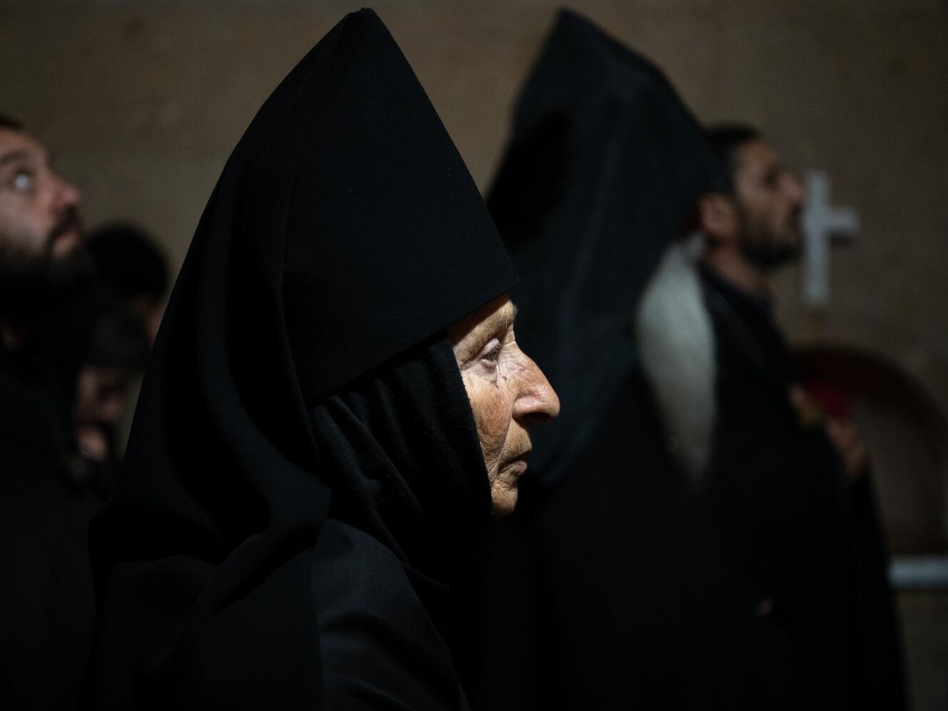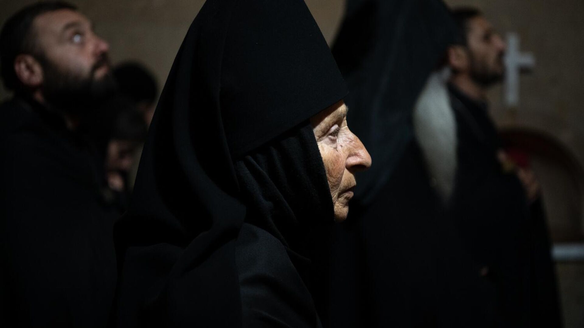 Монахиня Казараванского монастыря — единственного женского монастыря Армении — во время молитвы в церкви Сурб Нарек за находящихся в заключении священнослужителей