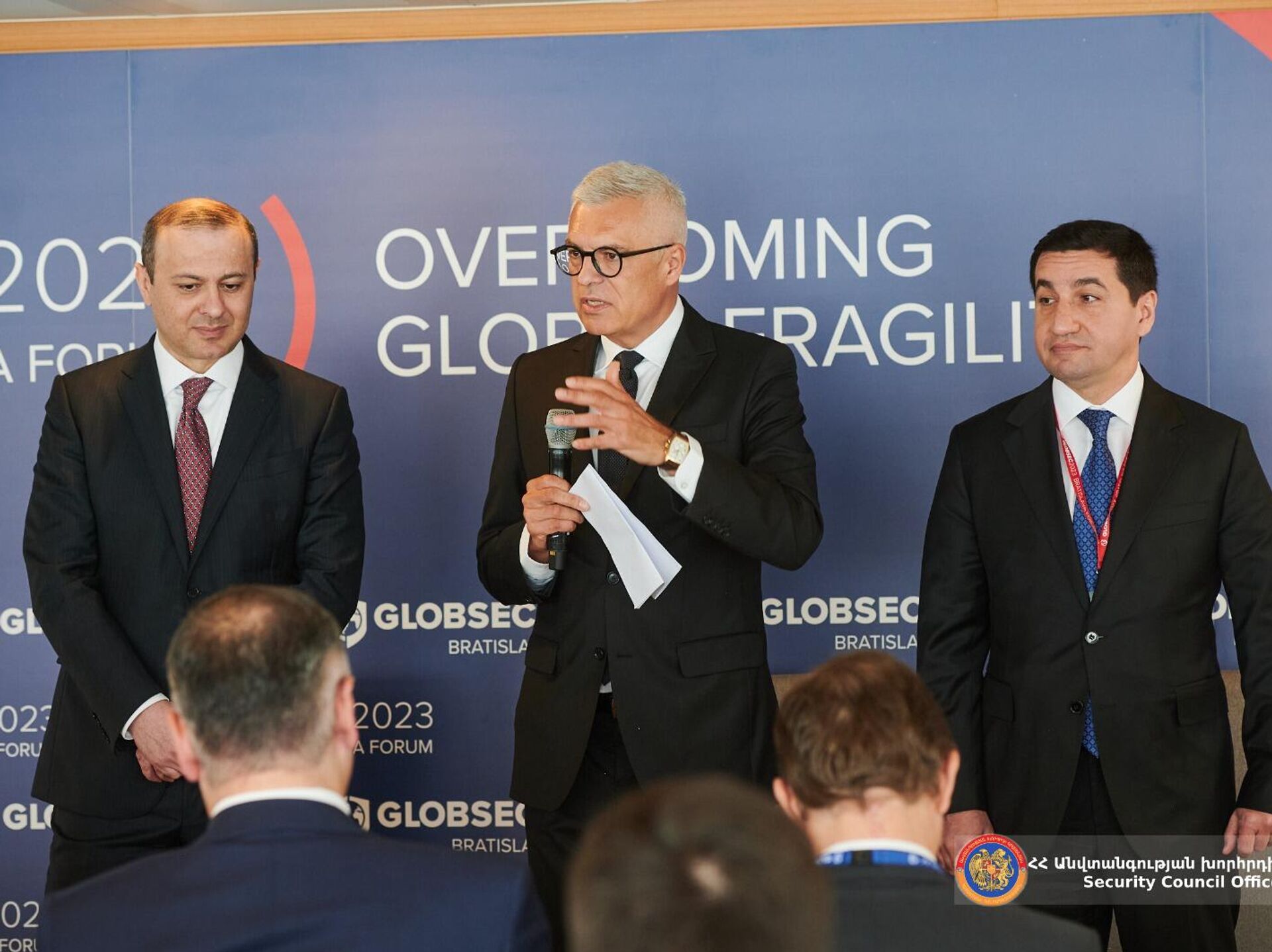 Вместе с помощником президента Азербайджана Хикметом Гаджиевым секретарь Совбеза Армении примет участие в панельной дискуссии на тему "Продолжительный мир между Арменией и Азербайджаном: Вашингтонское соглашение и совместное будущее".