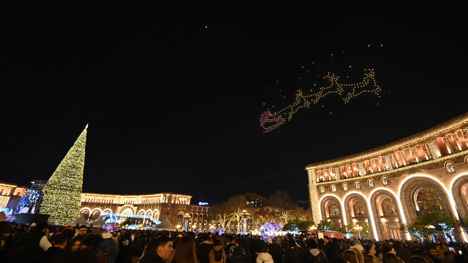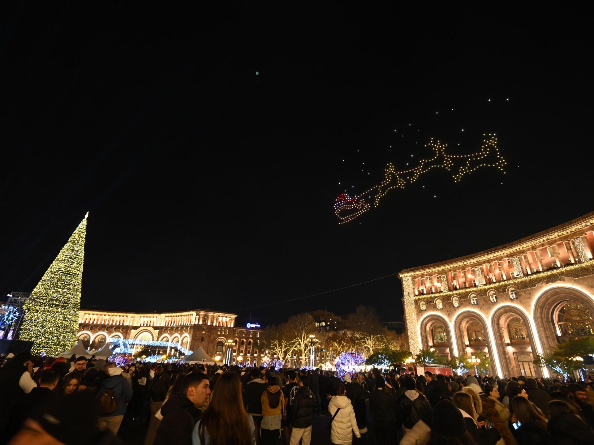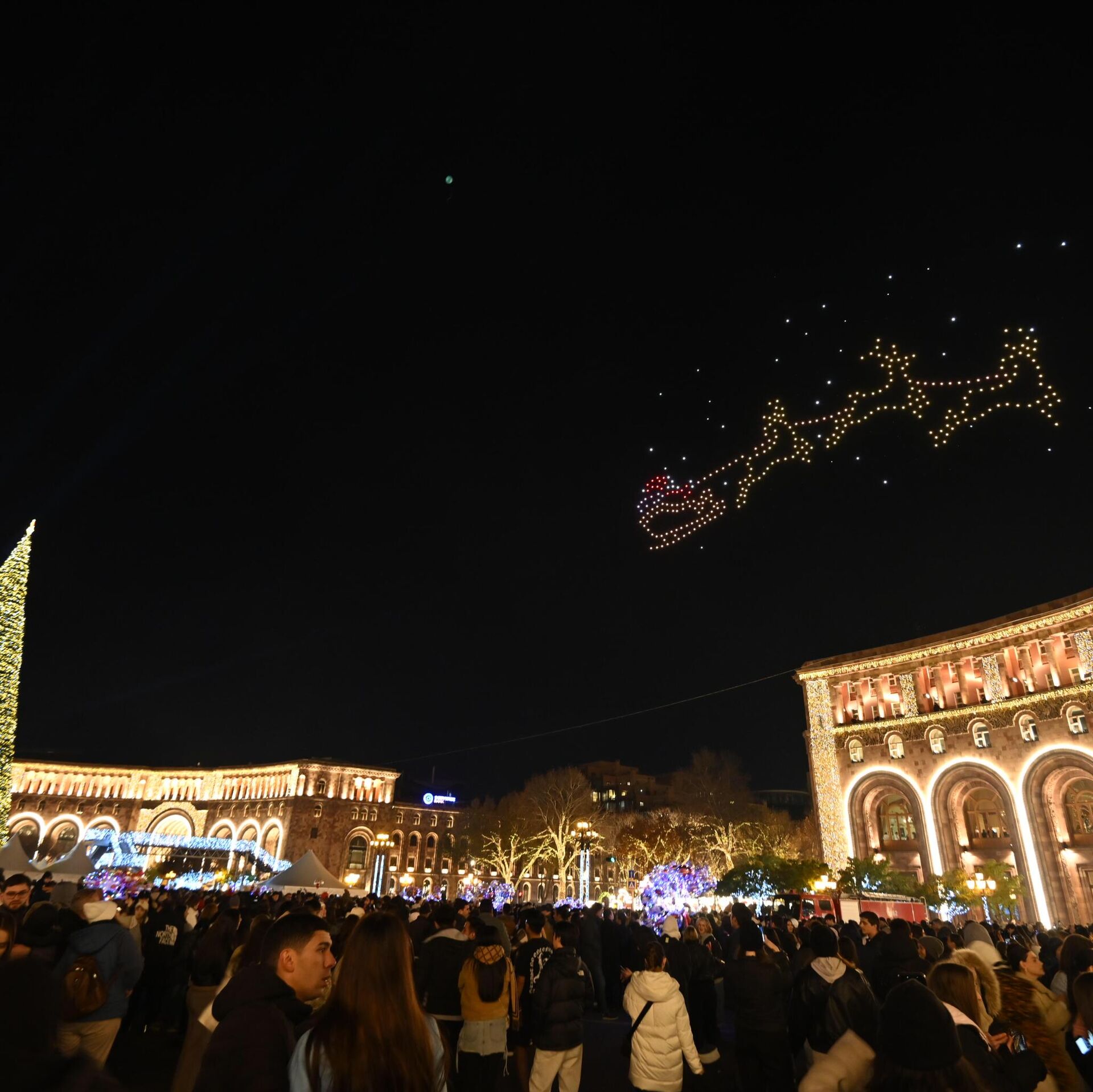 Площадь Республики наполнилась светом и праздничным настроением — здесь зажглись огни главной елки страны. Перед церемонией гостей ждало красочное шоу, а особую атмосферу вечеру придало выступление участника Детского Евровидения Альберта. Праздник вместе с ереванцами разделил мэр города Тигран Авинян, который пришел на церемонию с супругой.Главная елка столицы в этом году засияла обновленной иллюминацией, превратив площадь в настоящую новогоднюю сцену. Тысячи огнеи и световые композиции создали ощущение сказки, а в небе над площадью зажглись световые фигуры, дополнив праздничную атмосферу и став одним из самых эффектных моментов вечера.