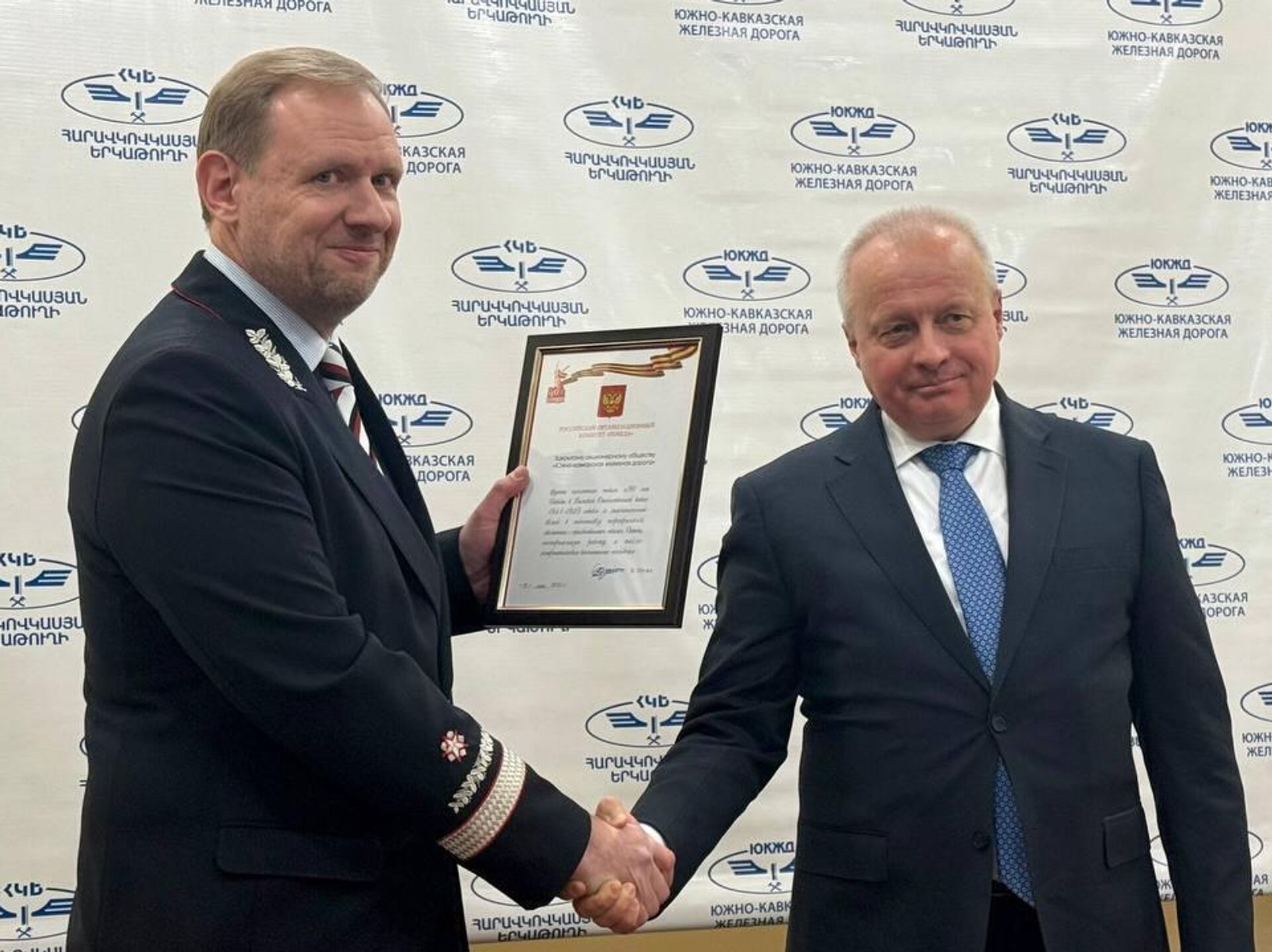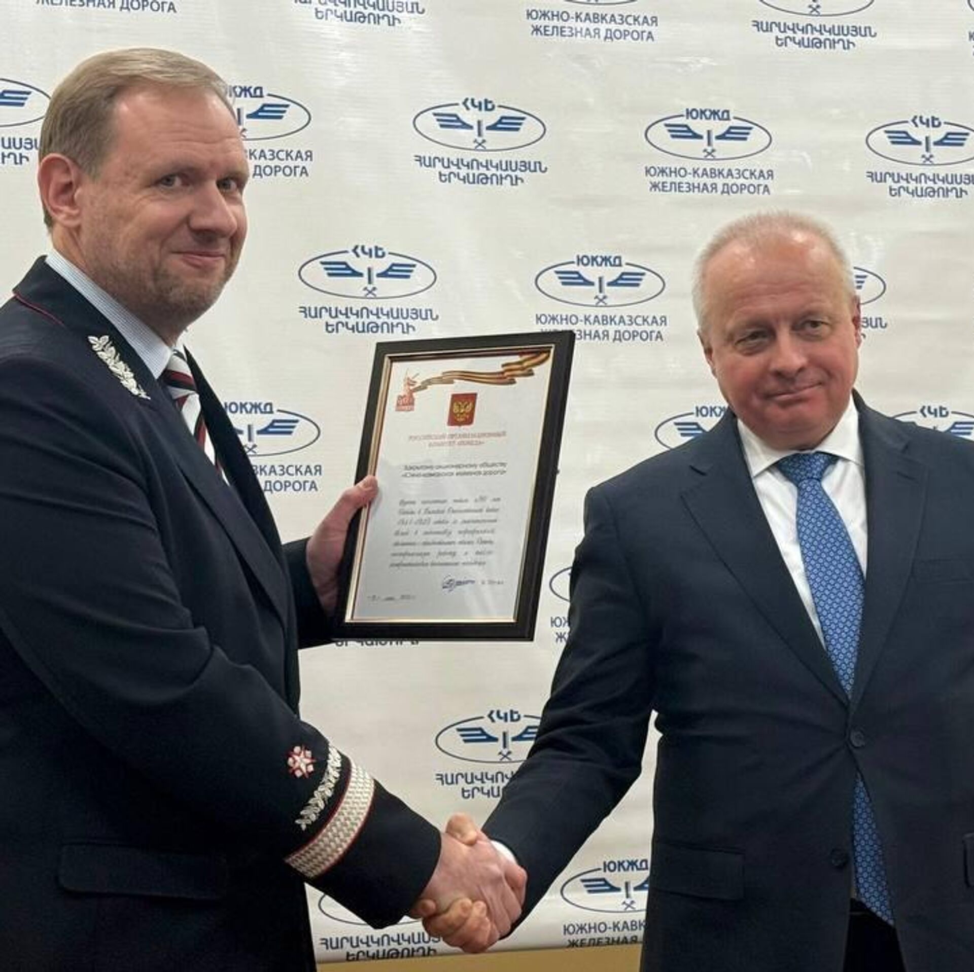 Посол России в Армении вручил коллективу ЮКЖД медаль "80 лет Победы" от имени Путина