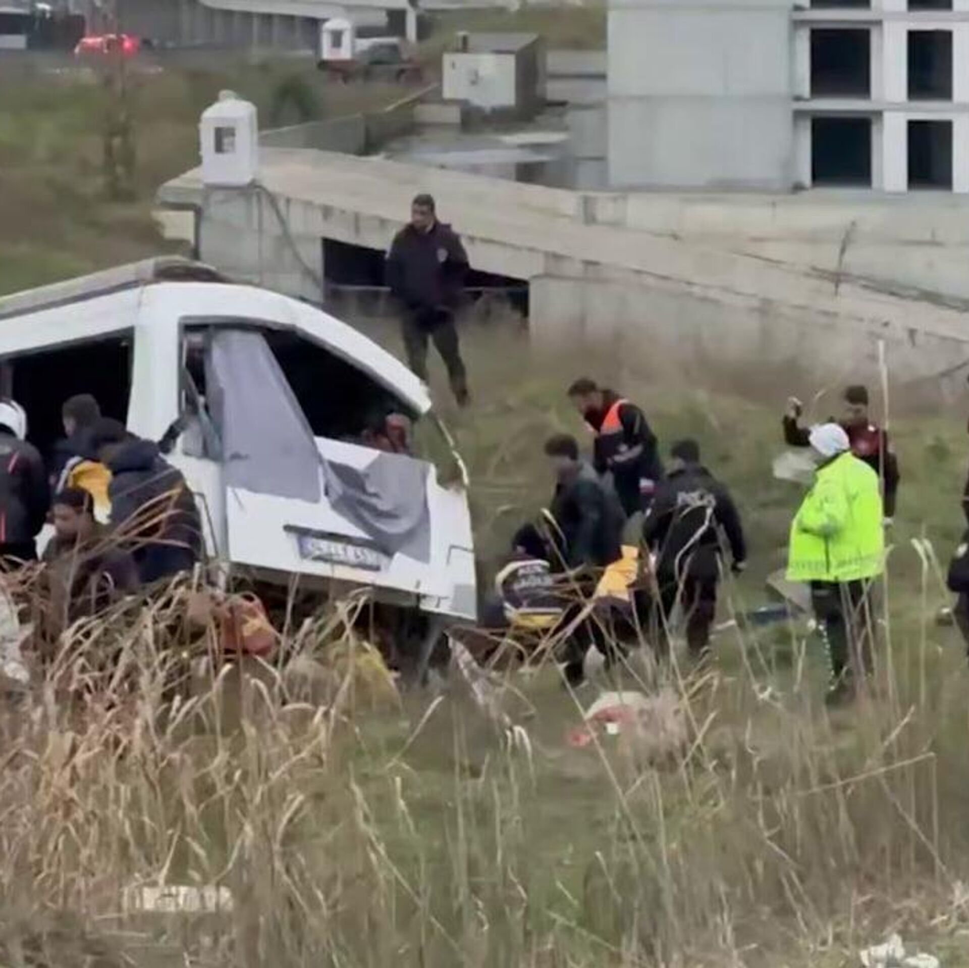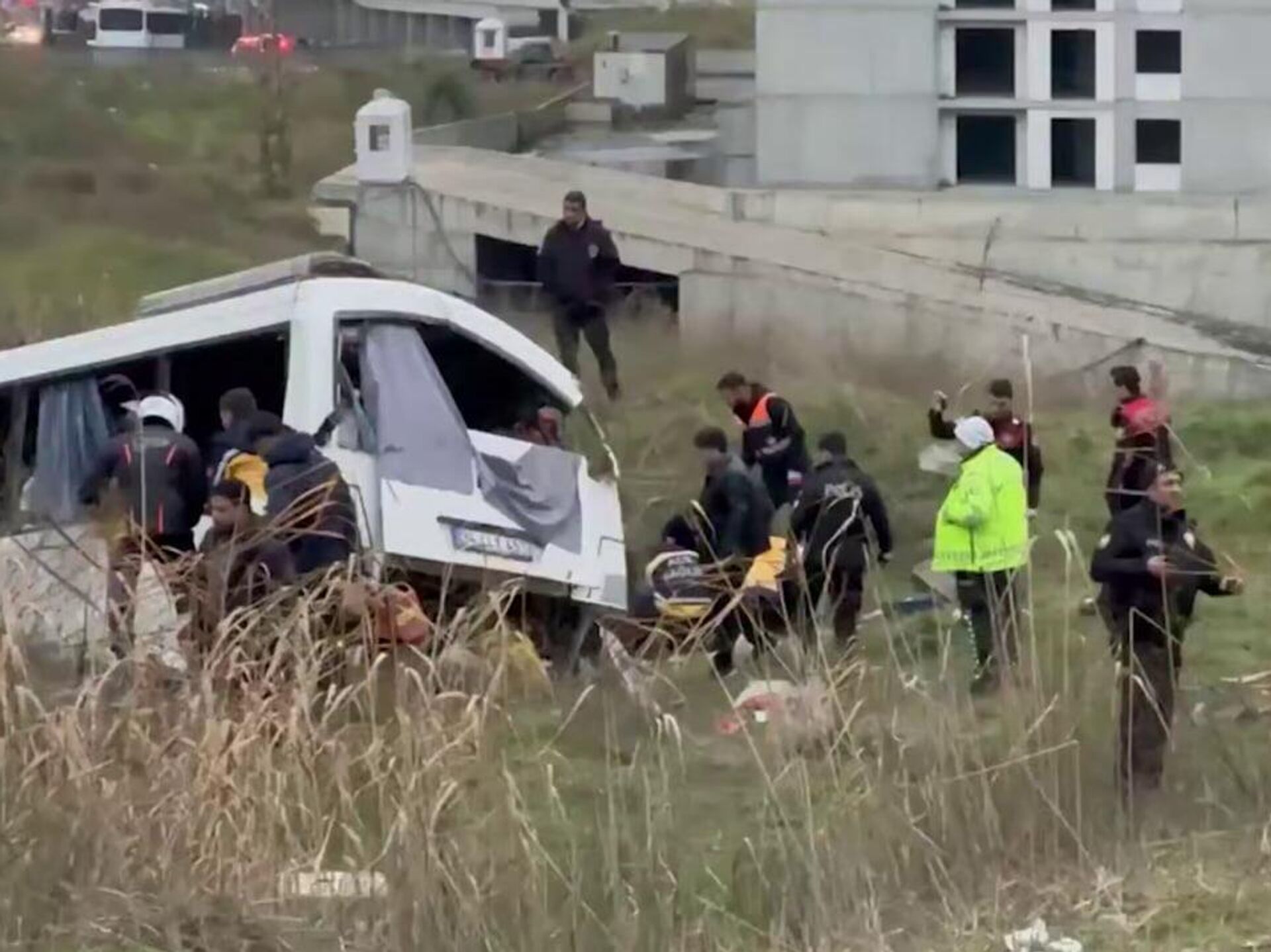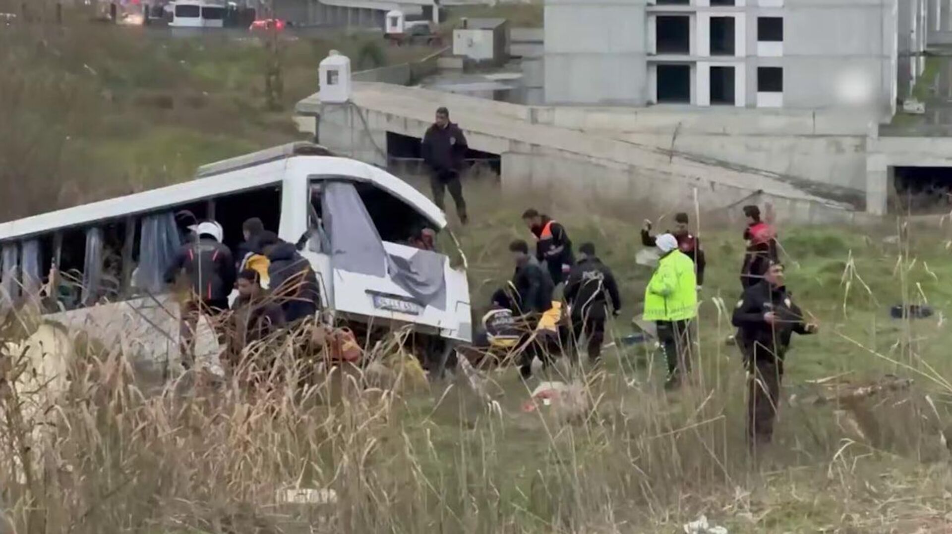 Служебный автобус, вылетев в кювет, врезался в загон в Стамбуле