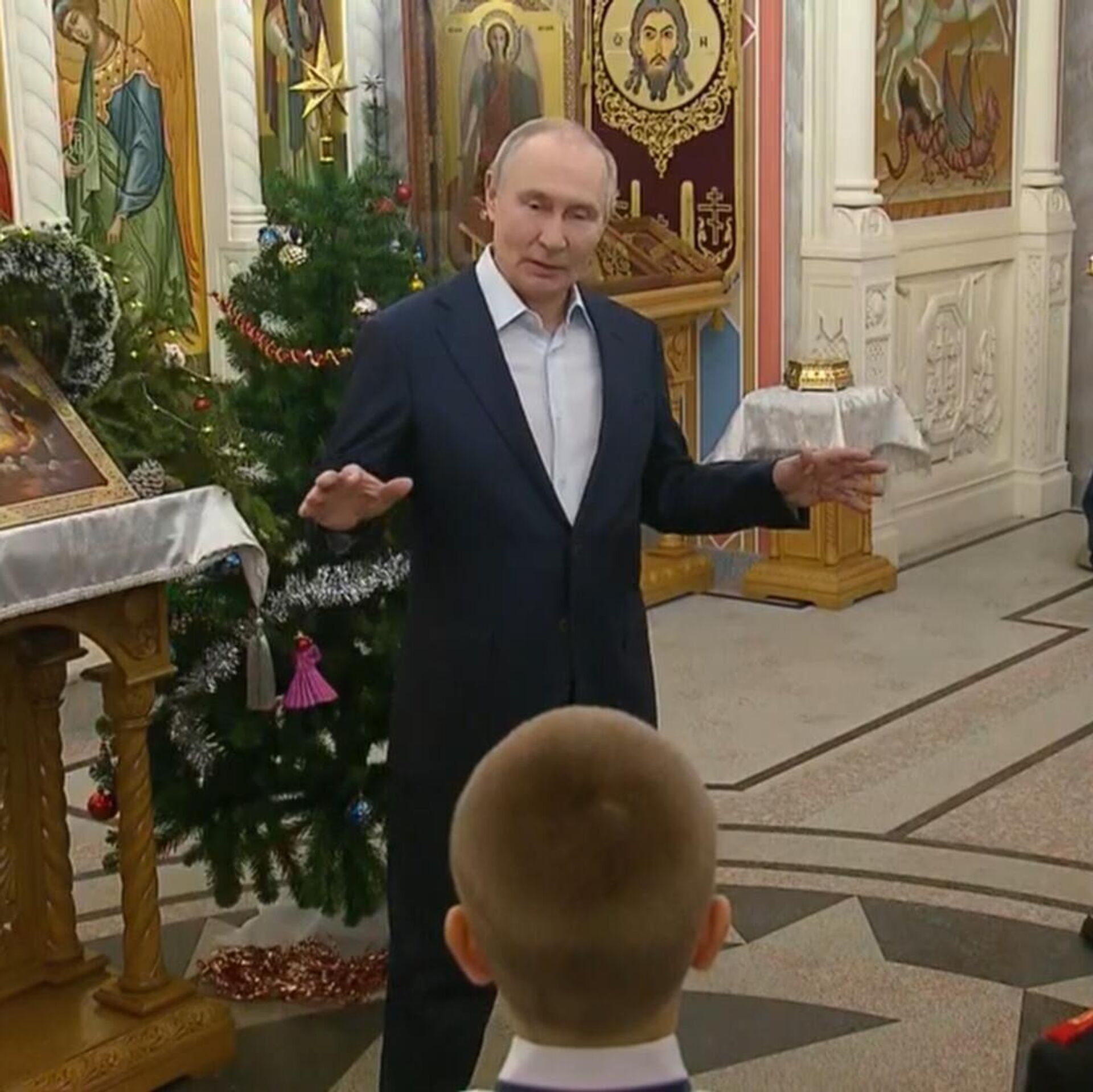 Российский лидер посетил рождественское богослужение в одном из храмов Подмосковья. 07.01.2026, Sputnik Армения