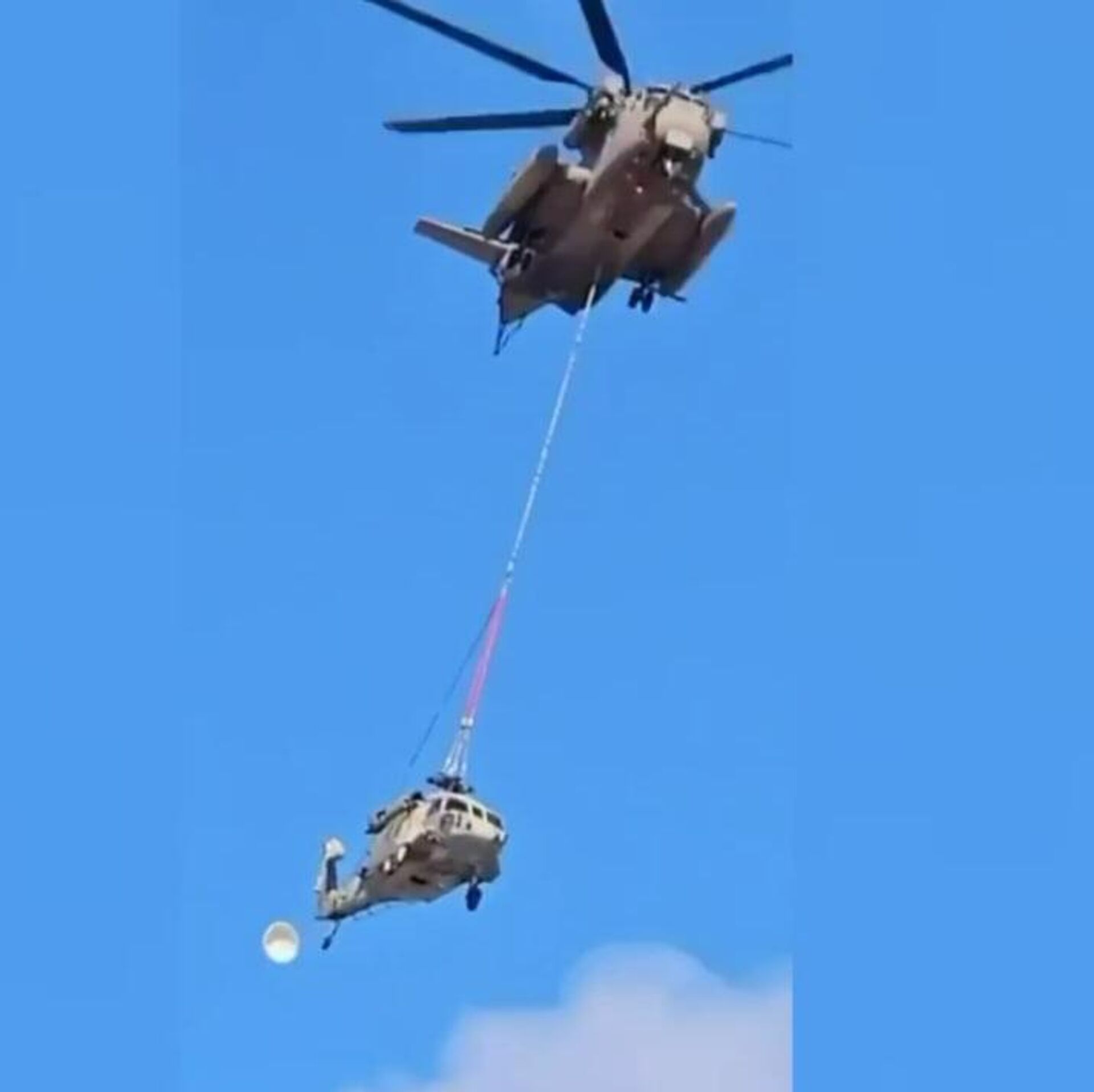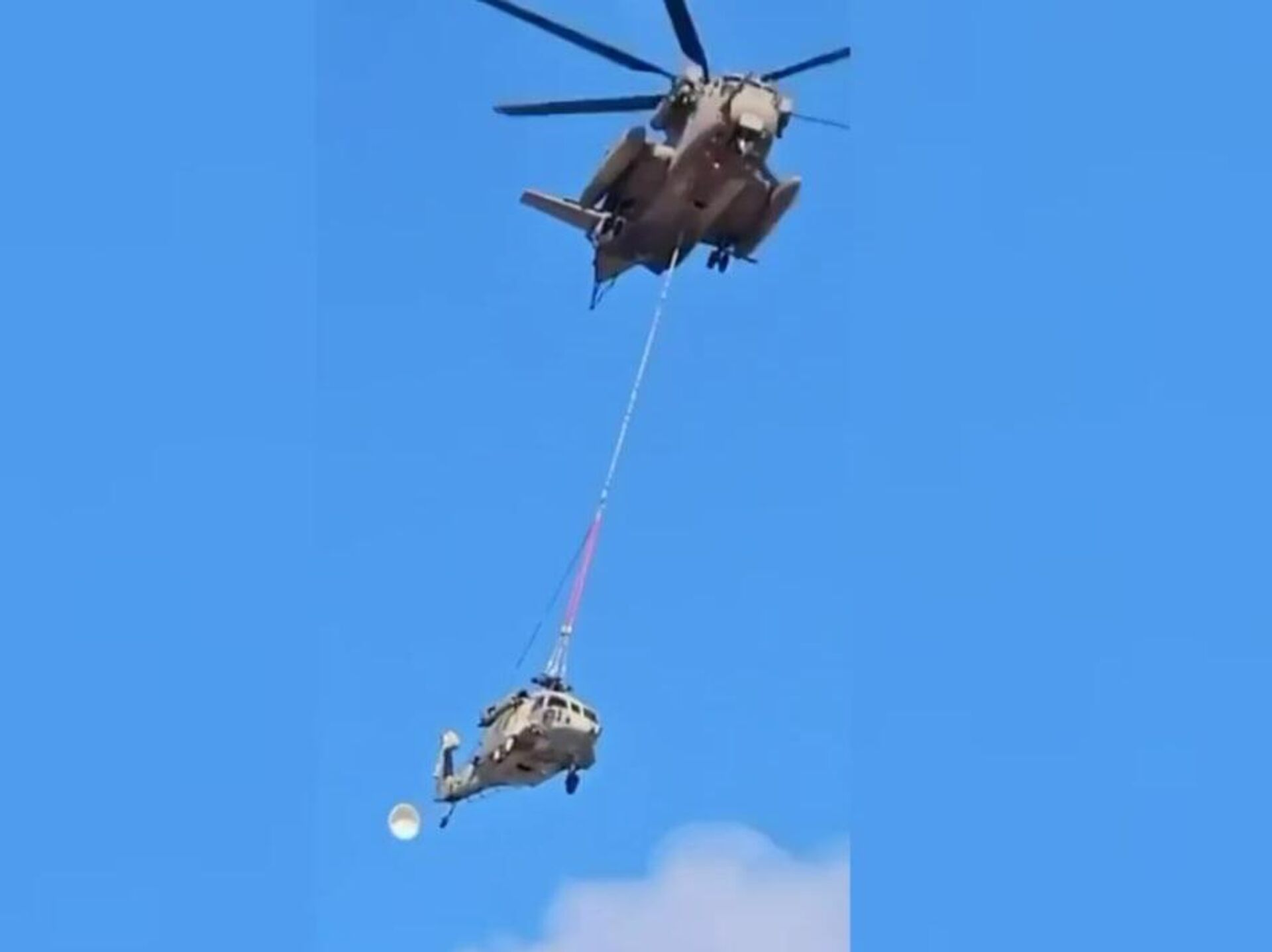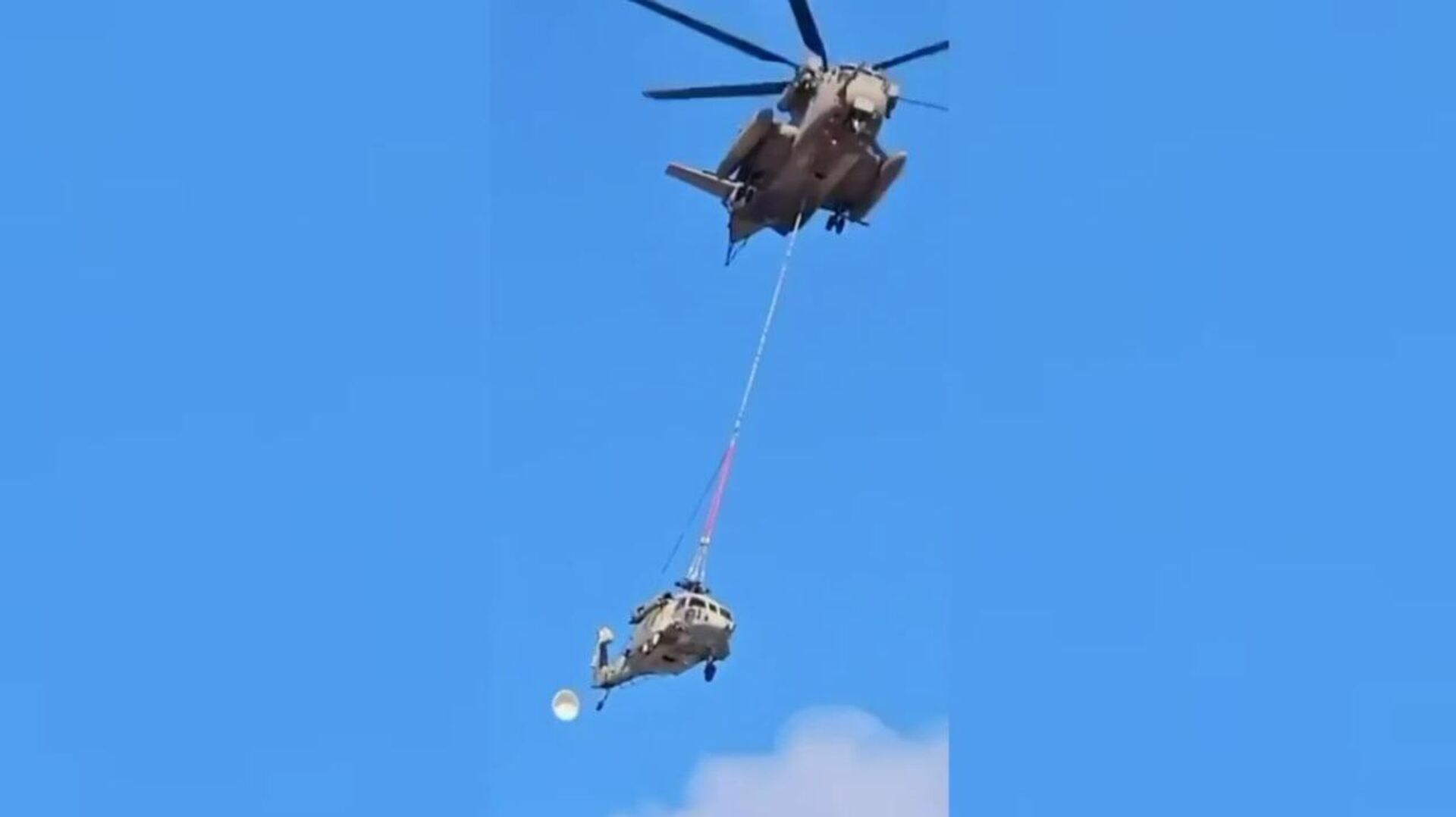 Вертолет ВВС Израиля разбился при попытке транспортировки из-за разрыва троса в воздухе