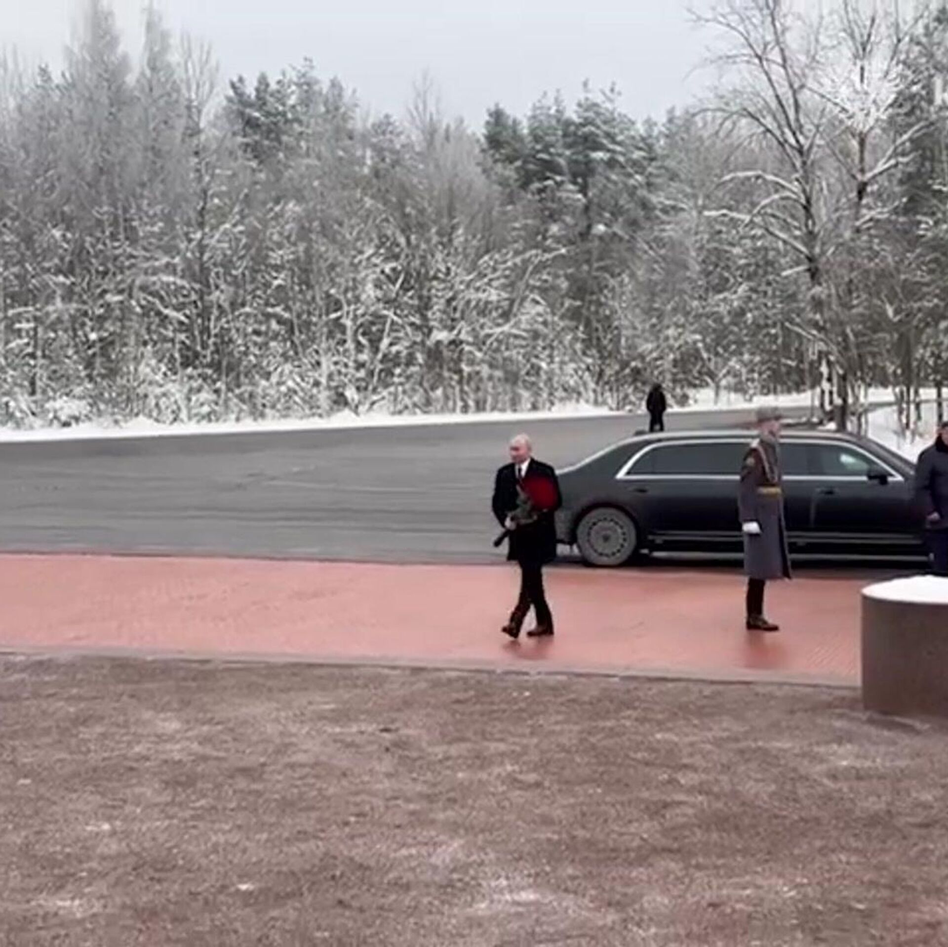 На кладбище Путина встретили представитель президента РФ в Северо-Западном федеральном округе Игорь Руденя и губернатор Санкт-Петербурга Александр Беглов. До монумента президент прошел по Аллее славы.