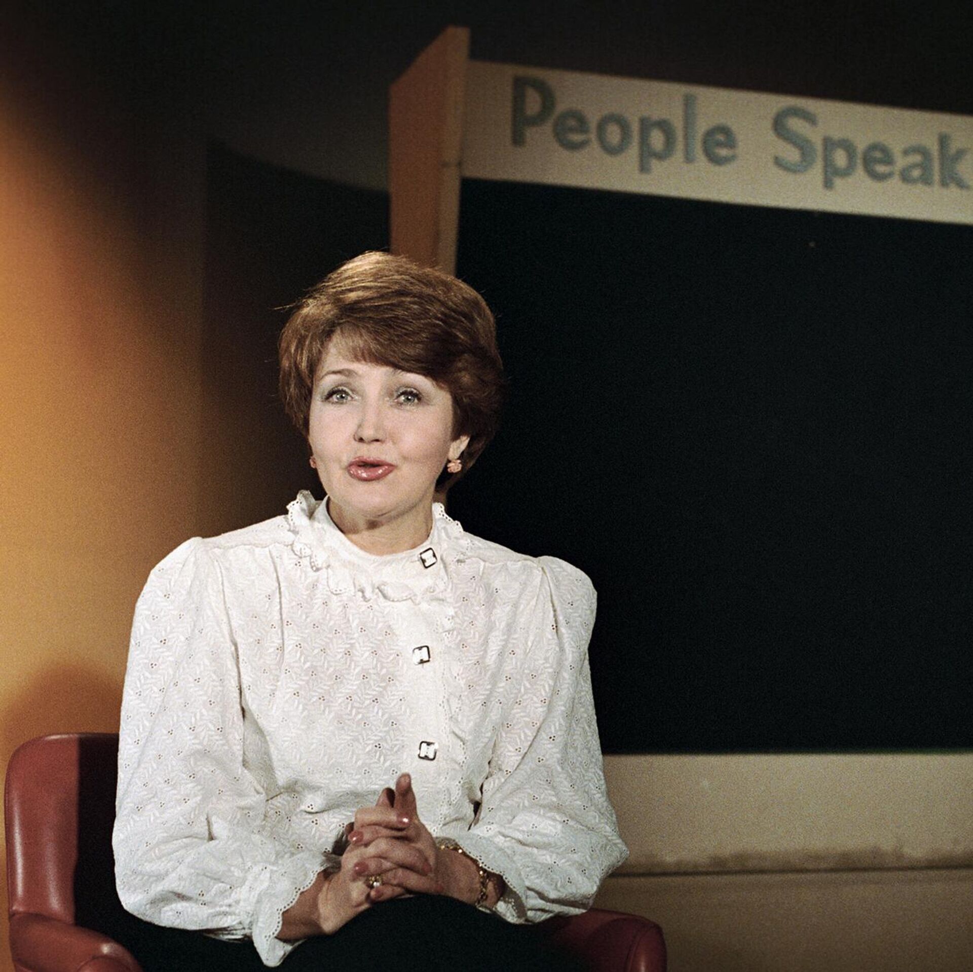 © Sputnik / ПтицынДиктор Центрального телевидения Светлана Жильцова ведет по учебной программе уроки английского языка (23 июня 1988). Москвa