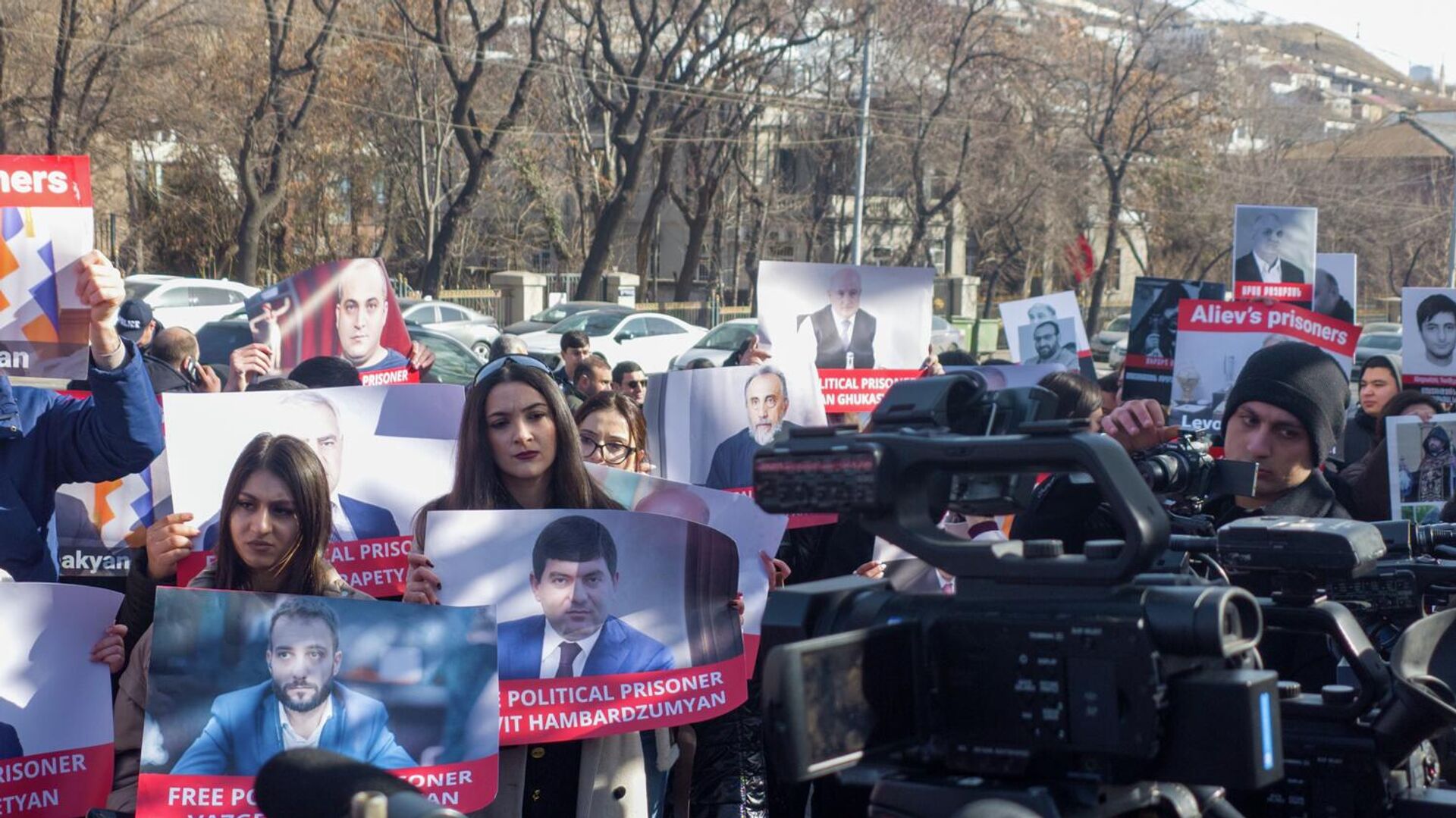 Участники акции пришли с фотографиями священнослужителей, политических деятелей и блогеров, в отношении которых осуществляется уголовное преследование в Армении, а также граждан и военно-политического руководства Нагорного Карабаха, удерживаемых в Баку.