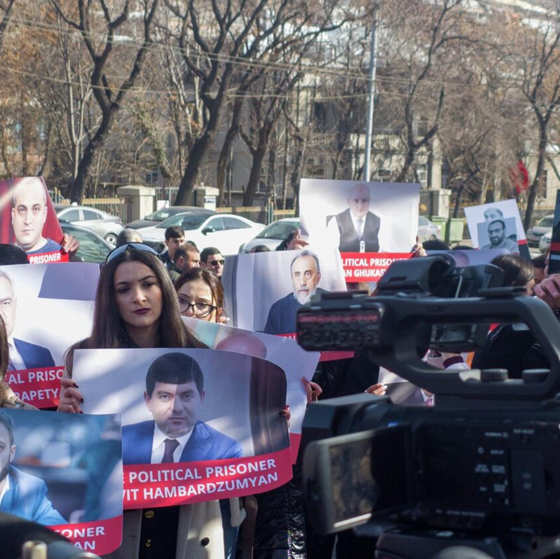 ЕРЕВАН, 5 фев – Sputnik. Акция протеста с требованием освобождения политзаключенных проходит перед зданием парламента Армении на фоне прибытия комиссара Совета Европы по правам человека Майкла О'Флаэрти.