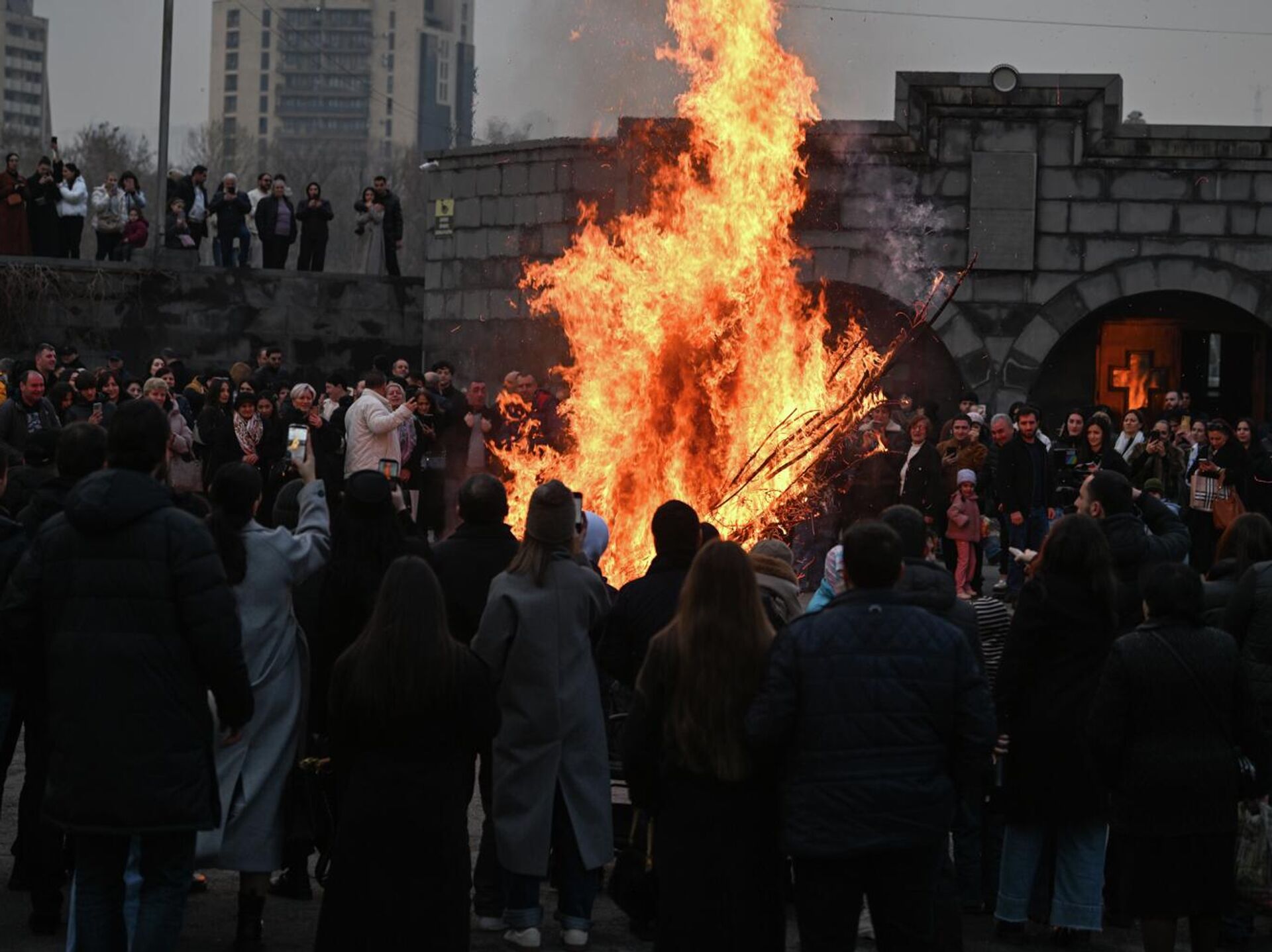 В главной церкви Еревана — Сурб Григор Лусаворич — сегодня отпраздновали Трндез (Сретение Господне). Трндез армяне отмечают еще с дохристианских времен. Этот праздник по сути символизировал окончание зимы. Он остался любимым праздником и после принятия христианства. В этот день ближе к сумеркам разжигают костер, вокруг которого танцуют дети и молодежь. По поверью, прыжки через огонь очищают от зла и обеспечивают плодовитость: праздник считается днем благословения семьи, особенно если в ней есть новорожденный.