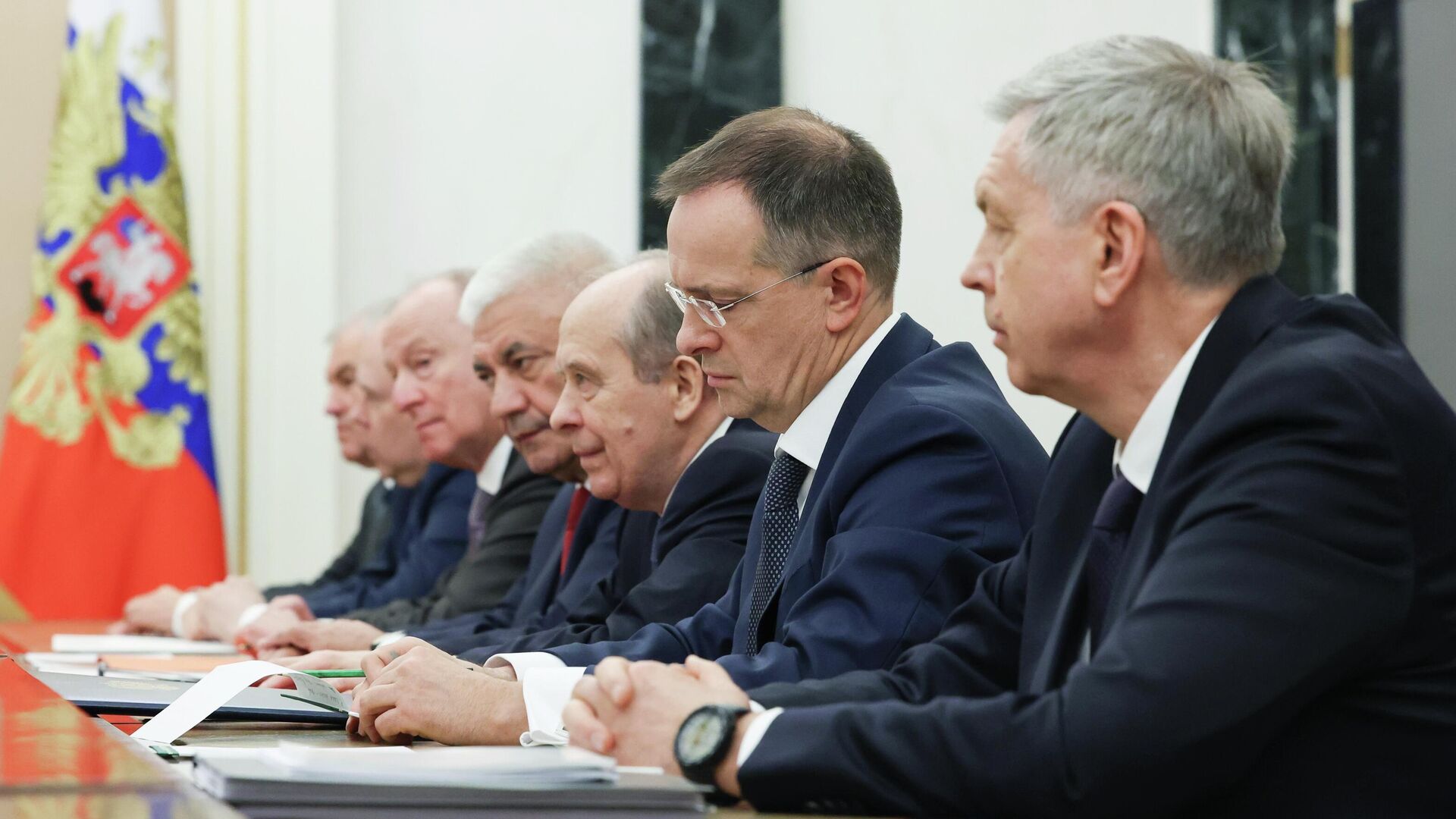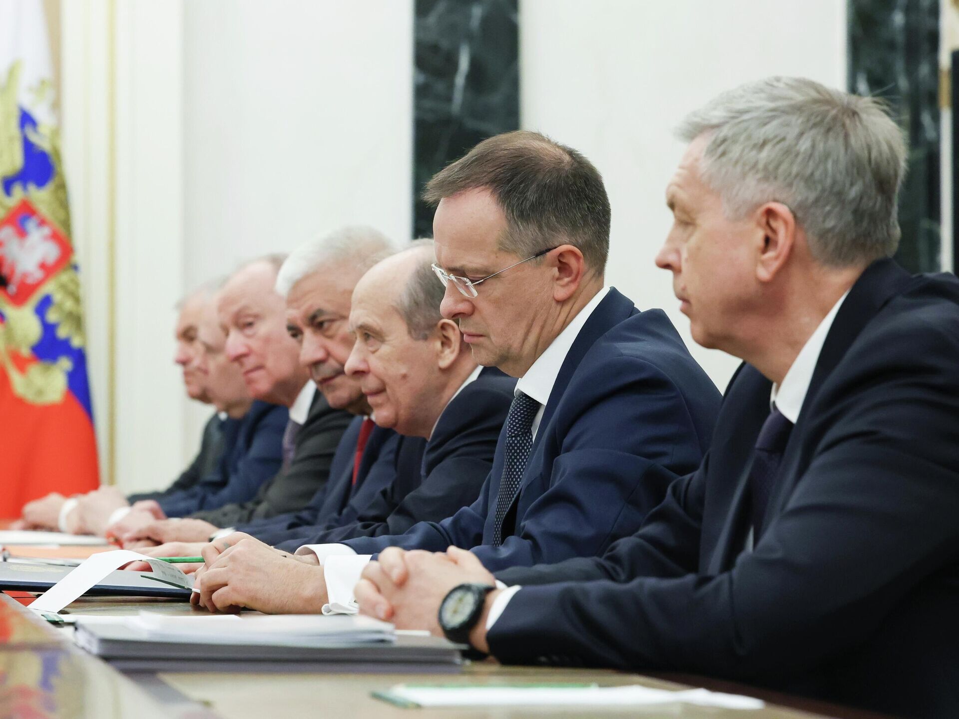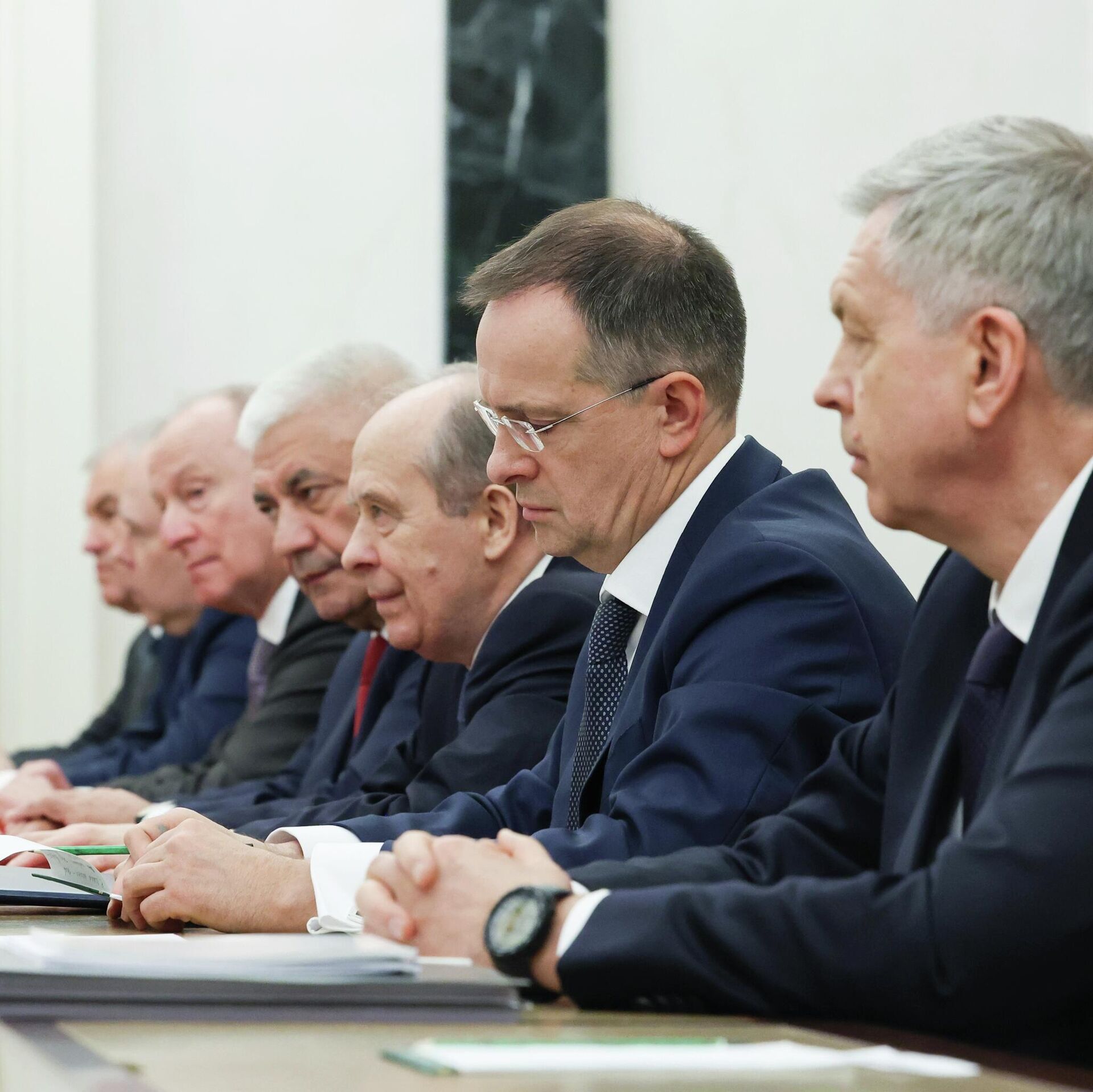 В пятницу президент России Владимир Путин провел оперативное совещание с постоянными членами Совета безопасности. На совещании также присутствовали Мединский и Костюков, участвовавшие в трехсторонних переговорах в Женеве.