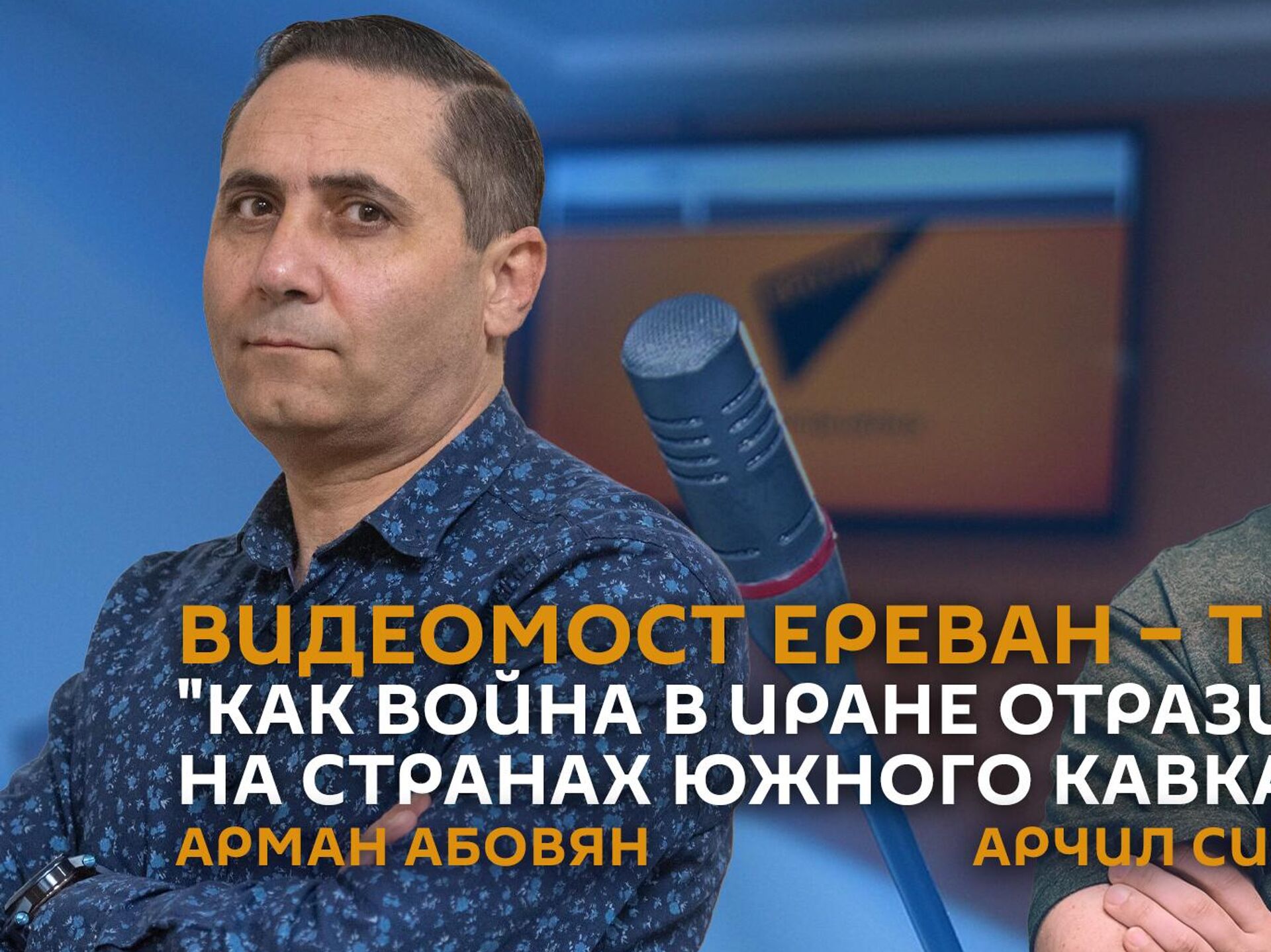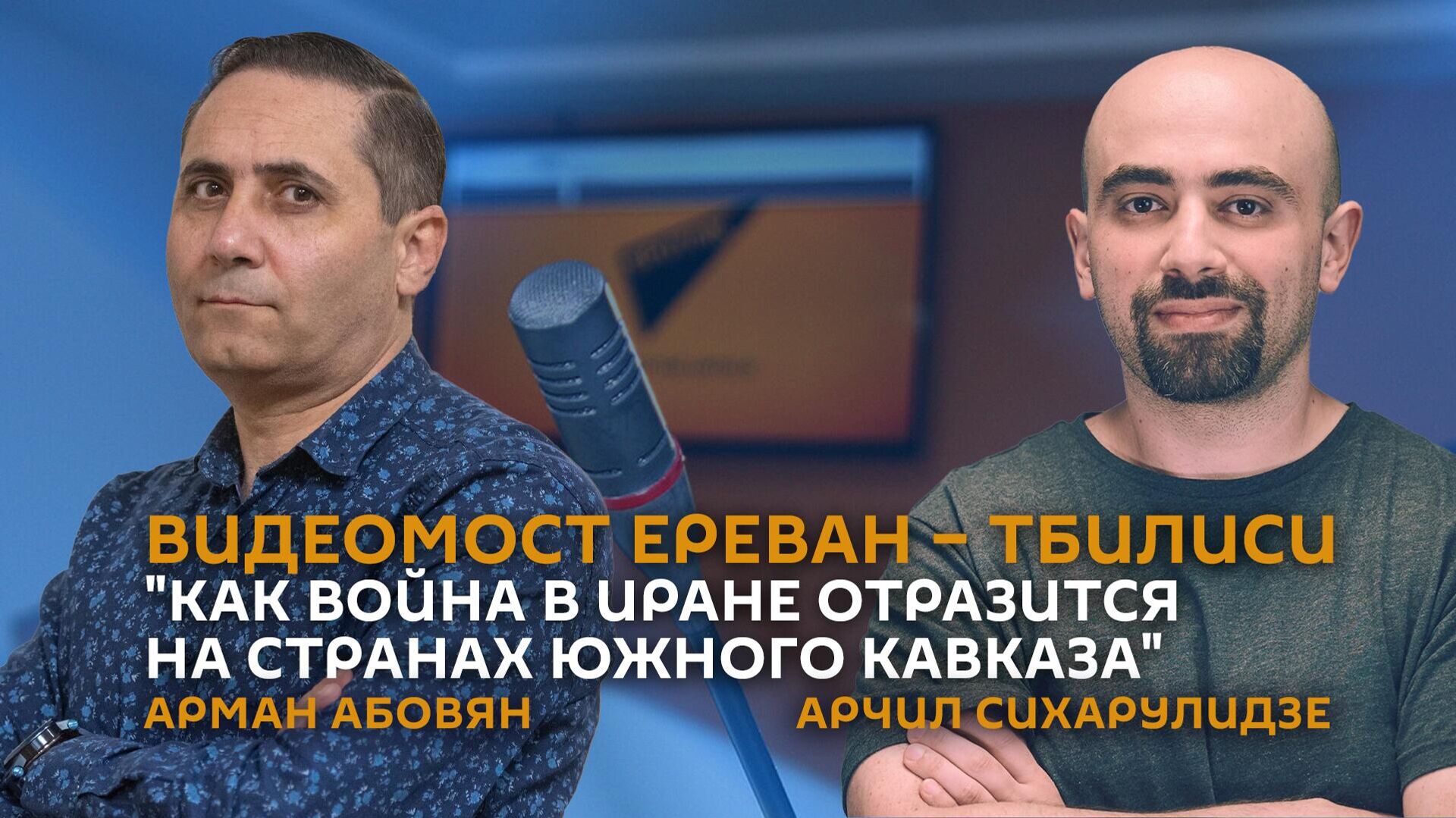 Видеомост Ереван – Тбилиси на тему "Как война в Иране отразится на странах Южного Кавказа" с участием политолога, экс-депутат Национального Собрания Армении Армана Абовяна (Ереван) и политолога Арчил Сихарулидзе (Тбилиси)