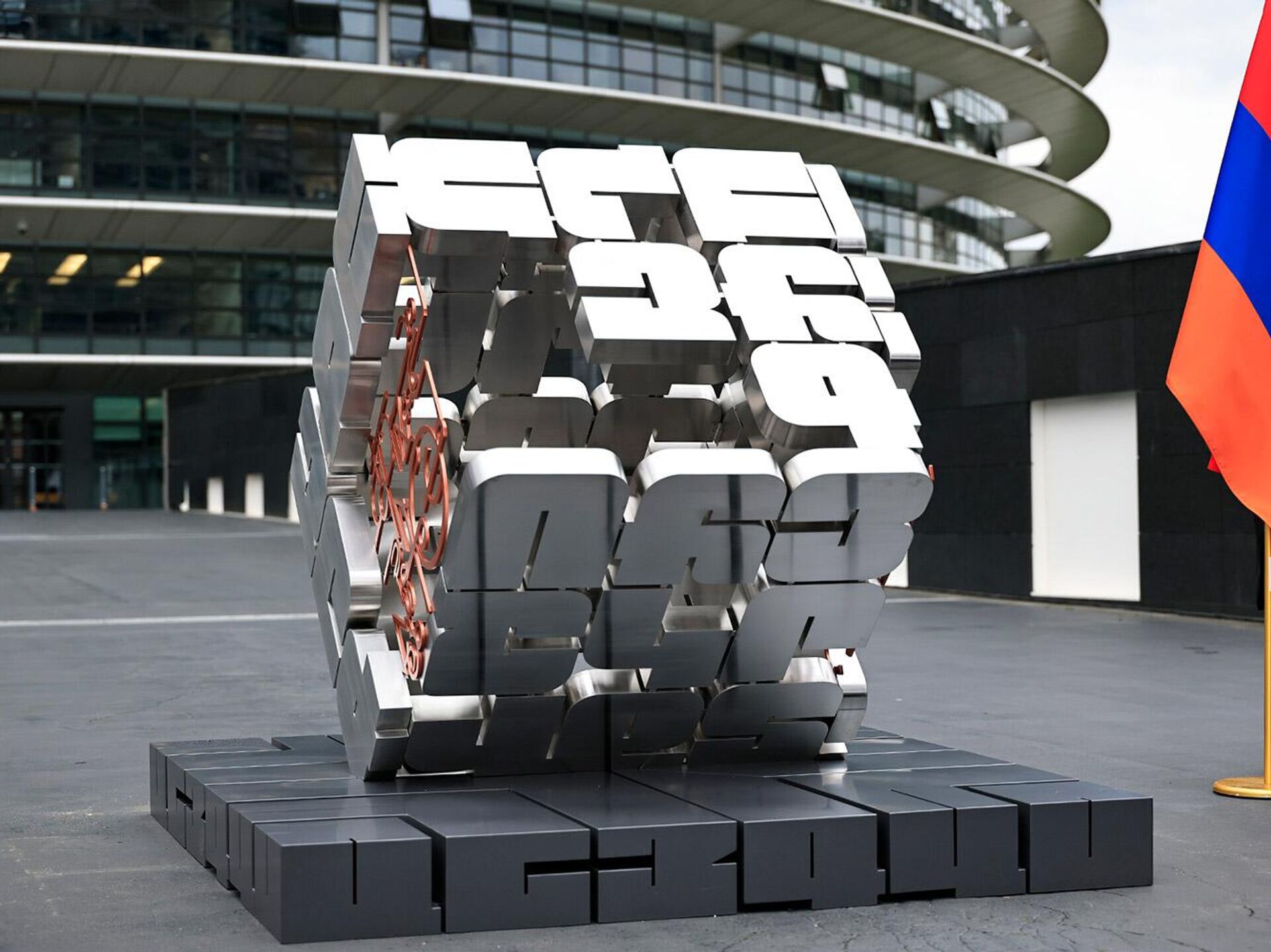 Памятник армянскому алфавиту установлен у здания Европейского парламента в Страсбурге