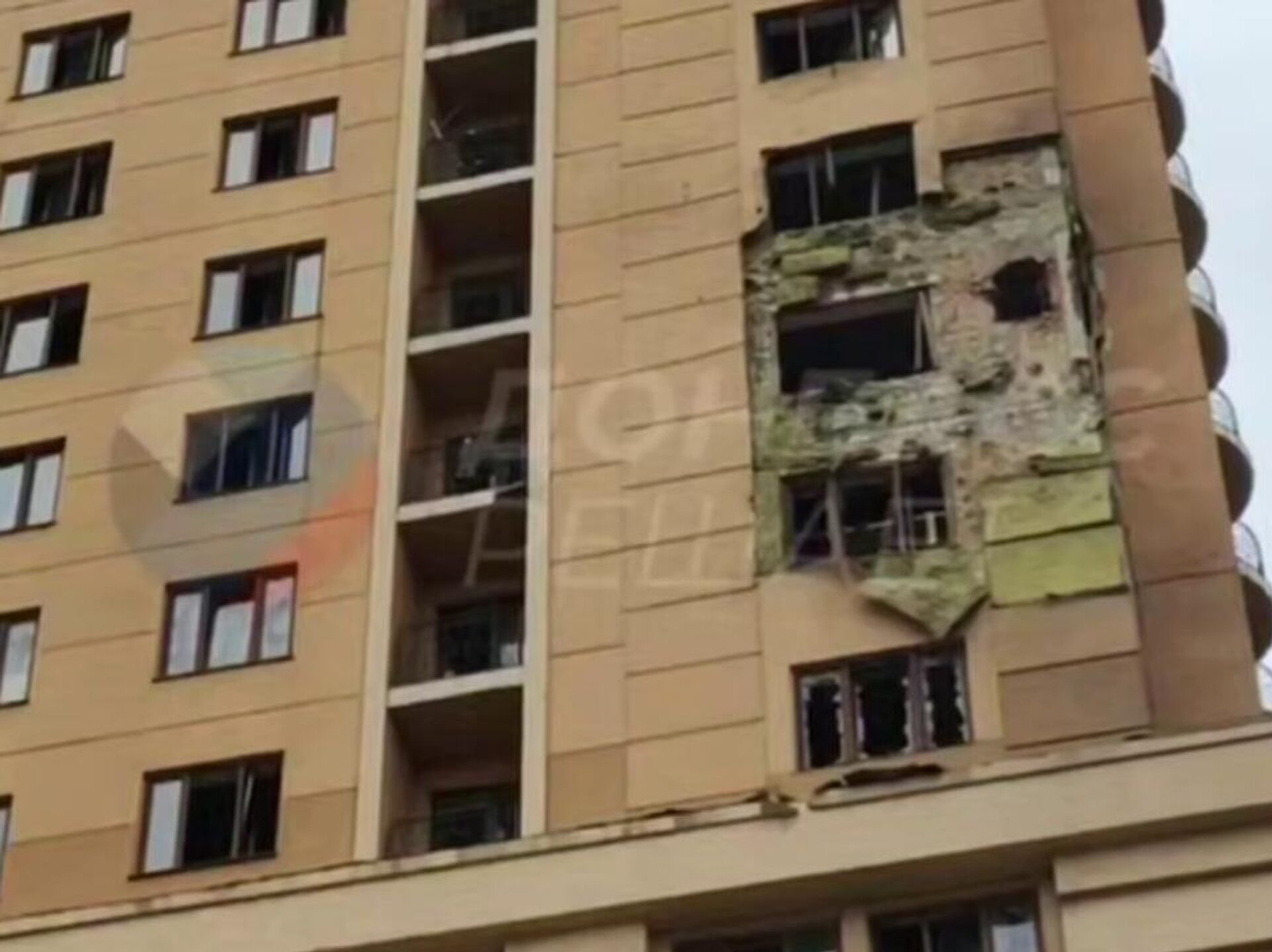 Повреждены также объекты гражданской инфраструктуры, многоквартирные жилые домостроения и легковые автомобили.