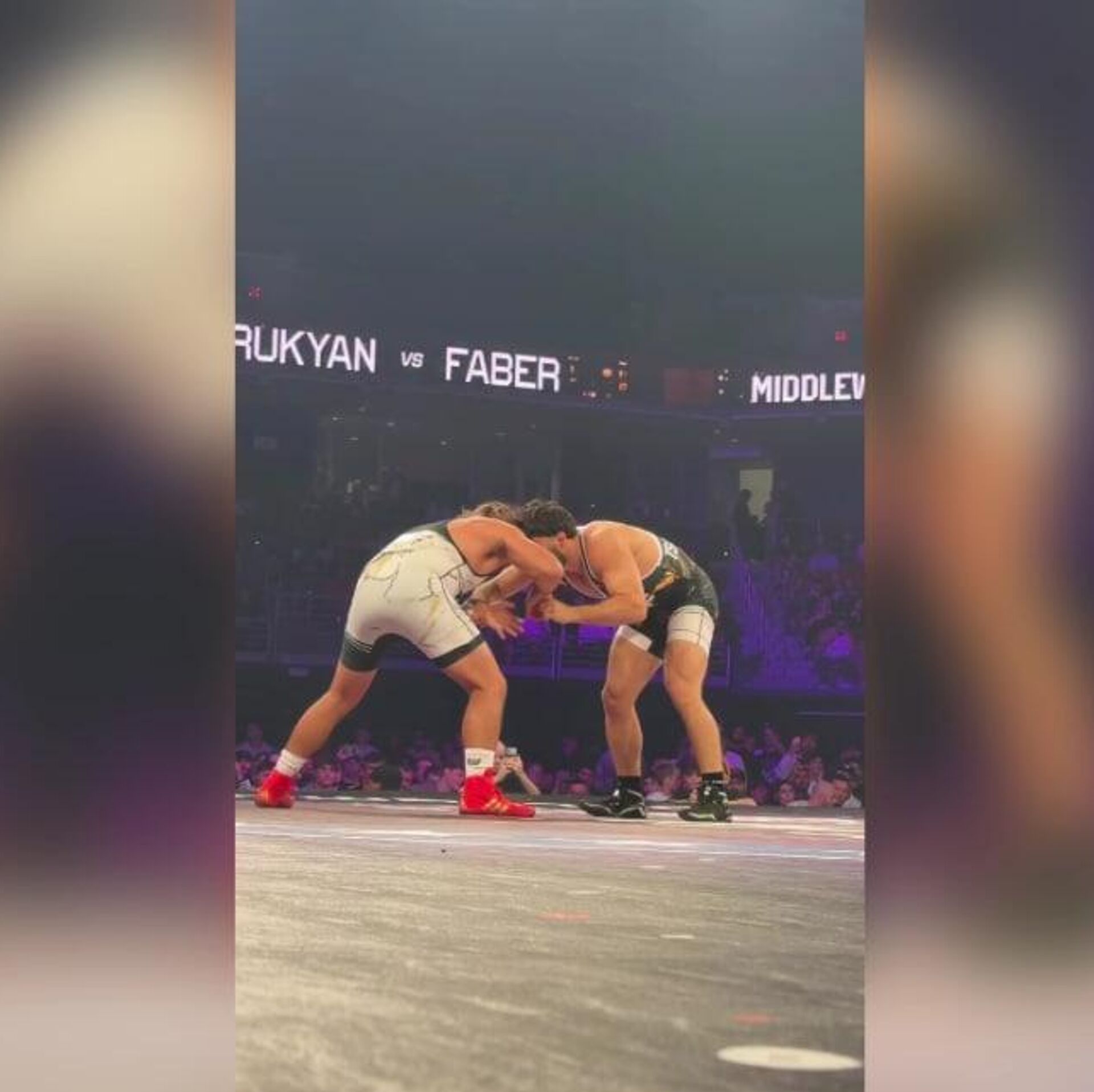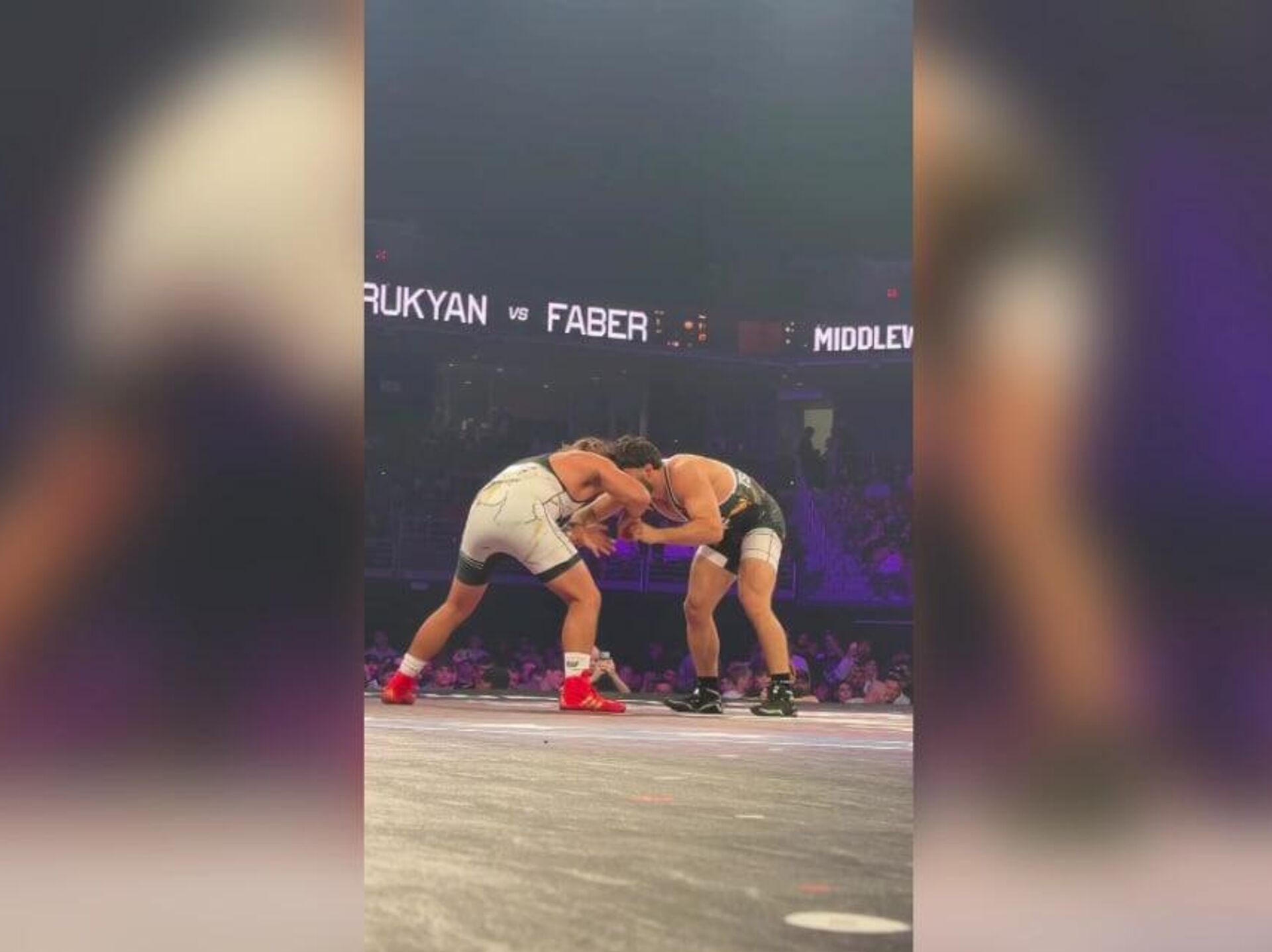 На кадрах видно, как Арман буквально выталкивает соперника с ковра в зрительный зал и возвращается.