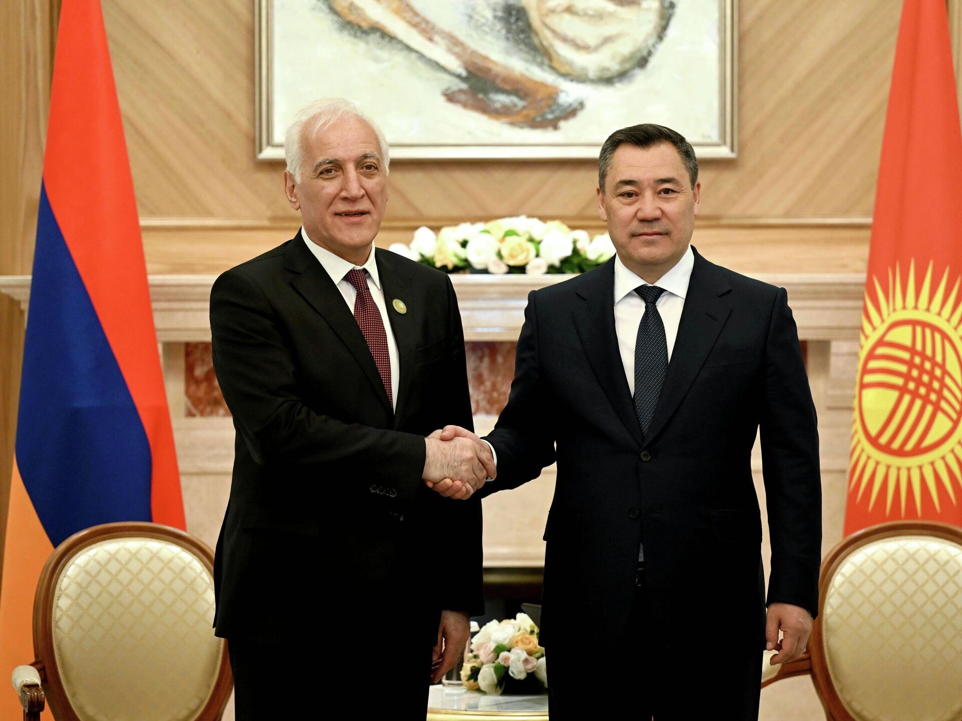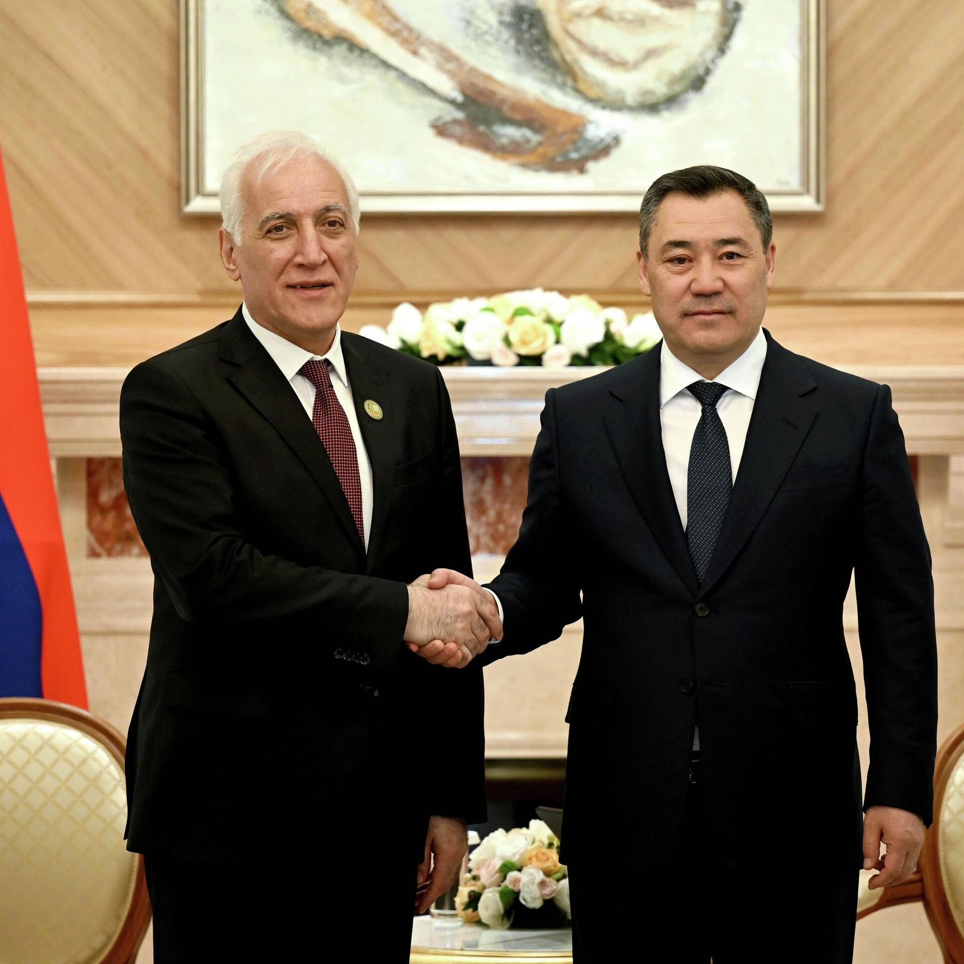 ЕРЕВАН, 22 апр – Sputnik. Президенты Кыргыстана и Армении Садыр Жапаров и Ваагн Хачатурян провели встречу в Астане, обсудив развитие двустороннего сотрудничества и взаимодействие на международных площадках. Об этом сообщили в пресс-службе киргизского лидера.